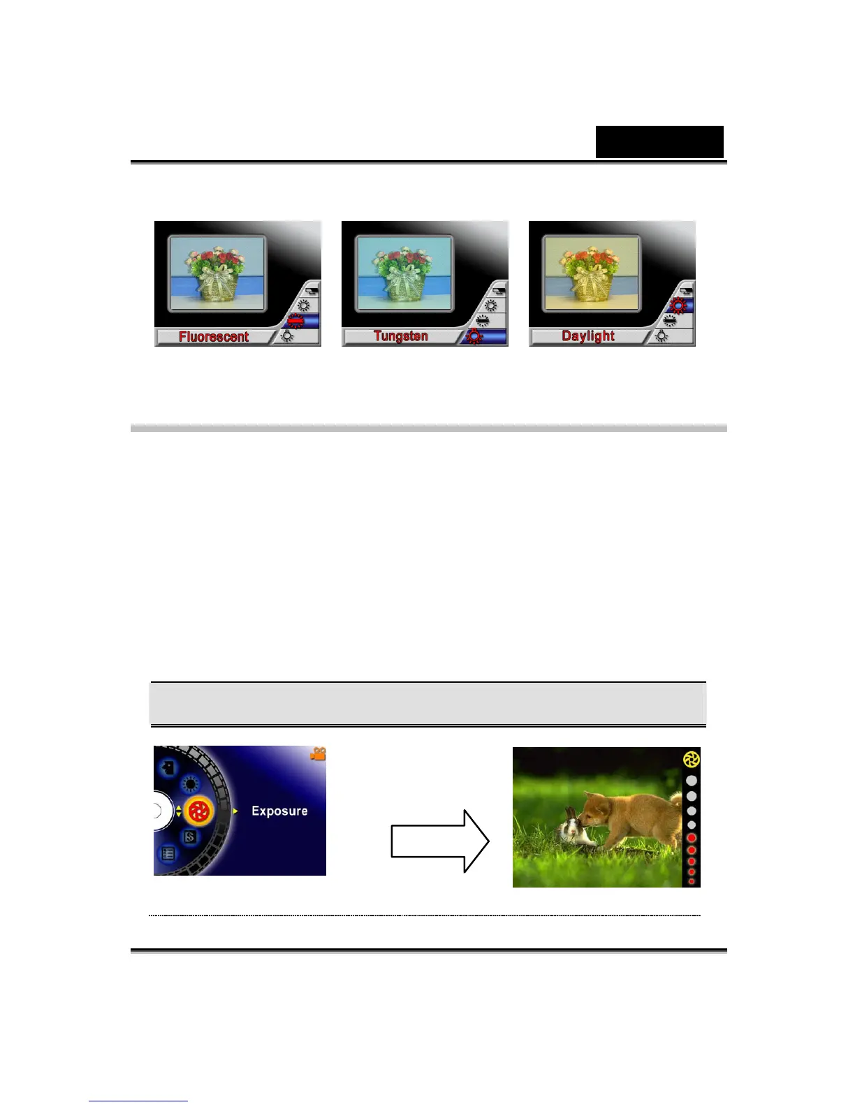buttons to switch to Exposure submenu.