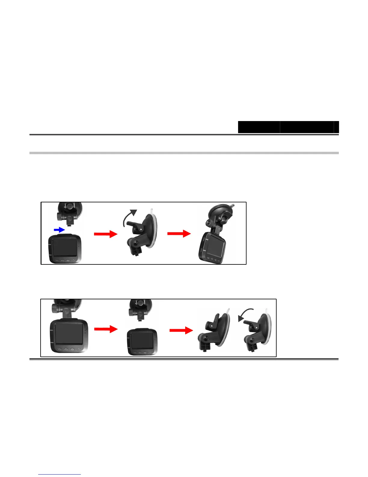 Masukkan mounting bracket ke slot T-Buckel pada DVR, dan pasang braket cangkir hisap pada kaca depan