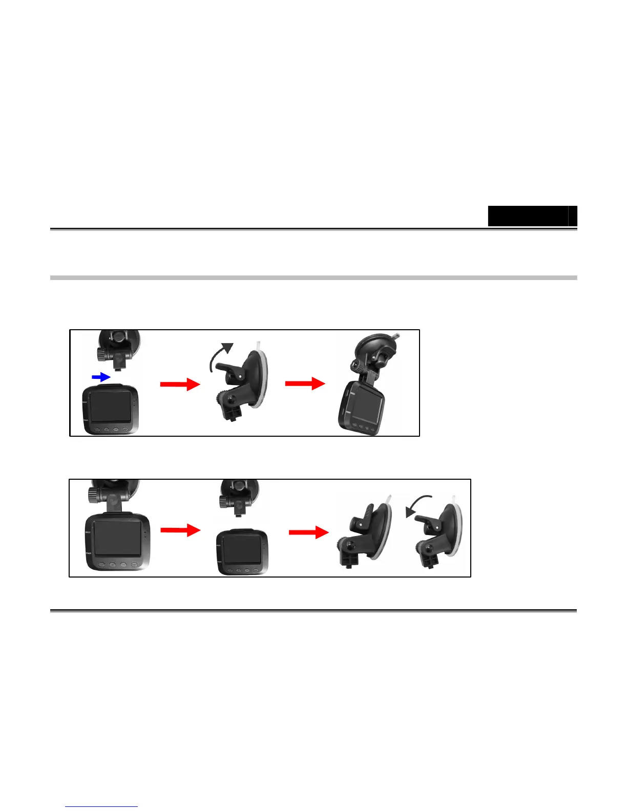 1. Прикрепите кронштейн к регистратору ( стр . 1 #16). Защелкните присоску на лобовом стекле .