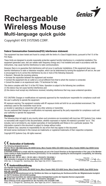 Wireless Mouse: NX-7XXX Series, NX-8XXXX Series, Micro Traveler 900S, ECO-8XXX Series, Micro Traveler 9000R, Ergo 8XXXX Series