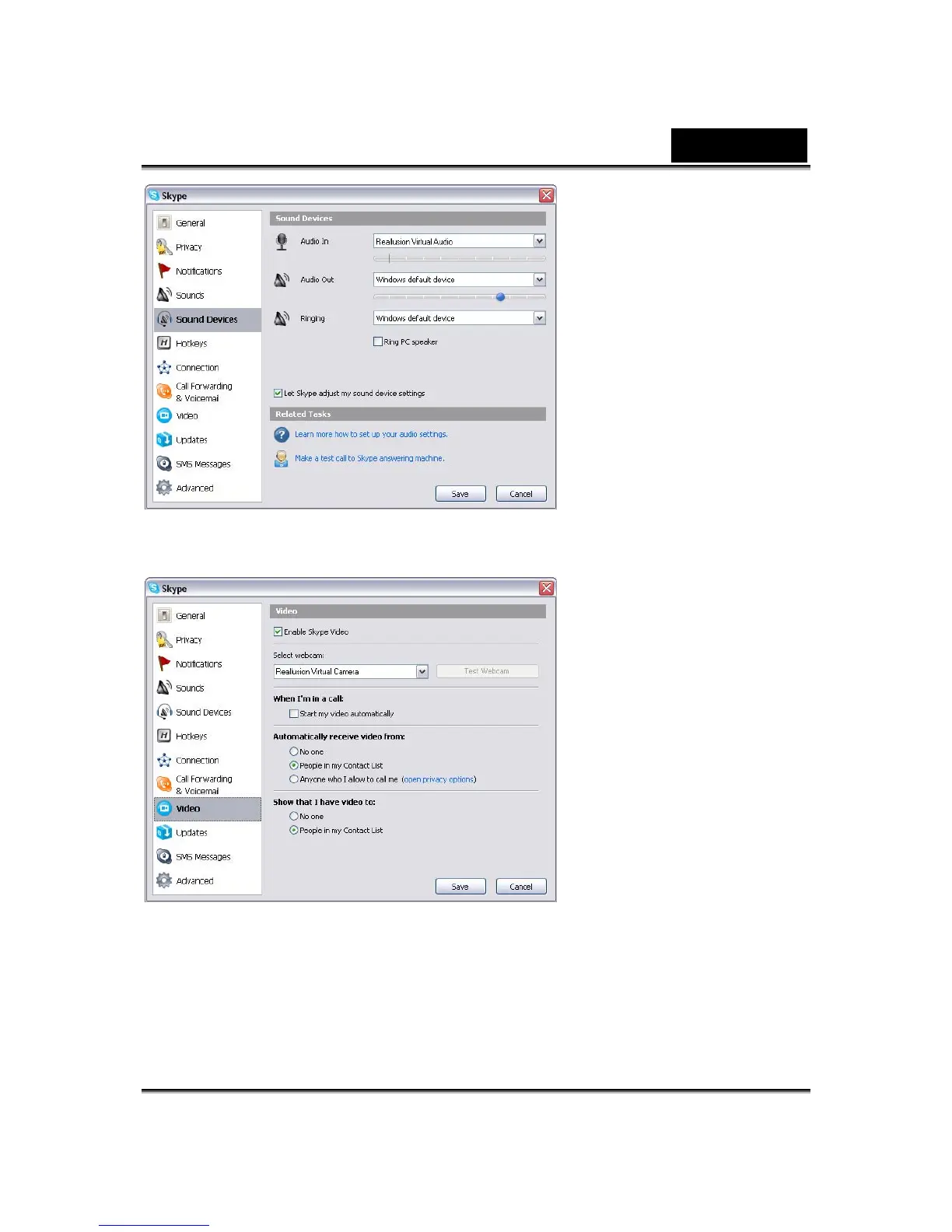 5. Click Save button. Your messenger then receives its audio and video