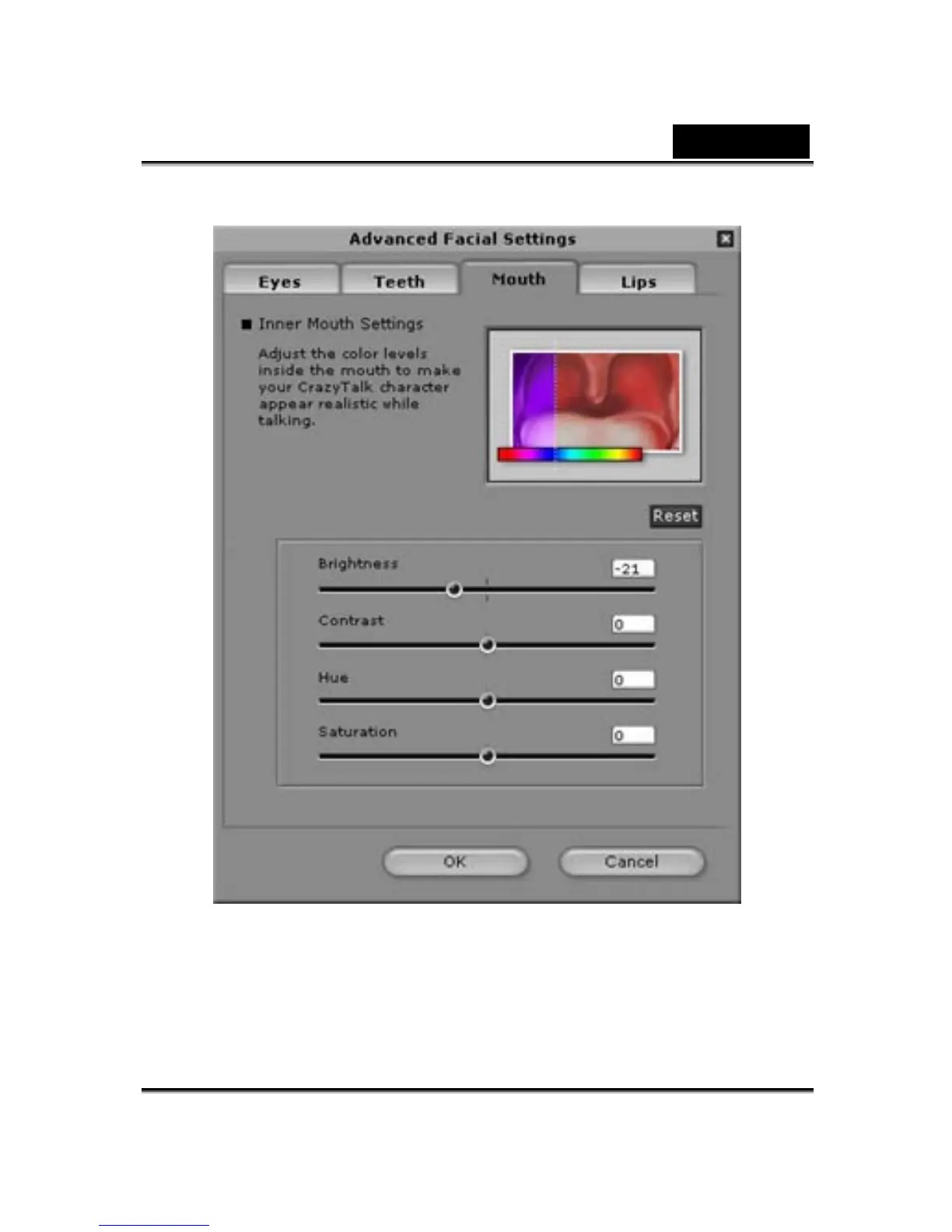 Genius EYE 312 - Creating Avatar Model - Mouth Settings; Inner Mouth Color Adjustments