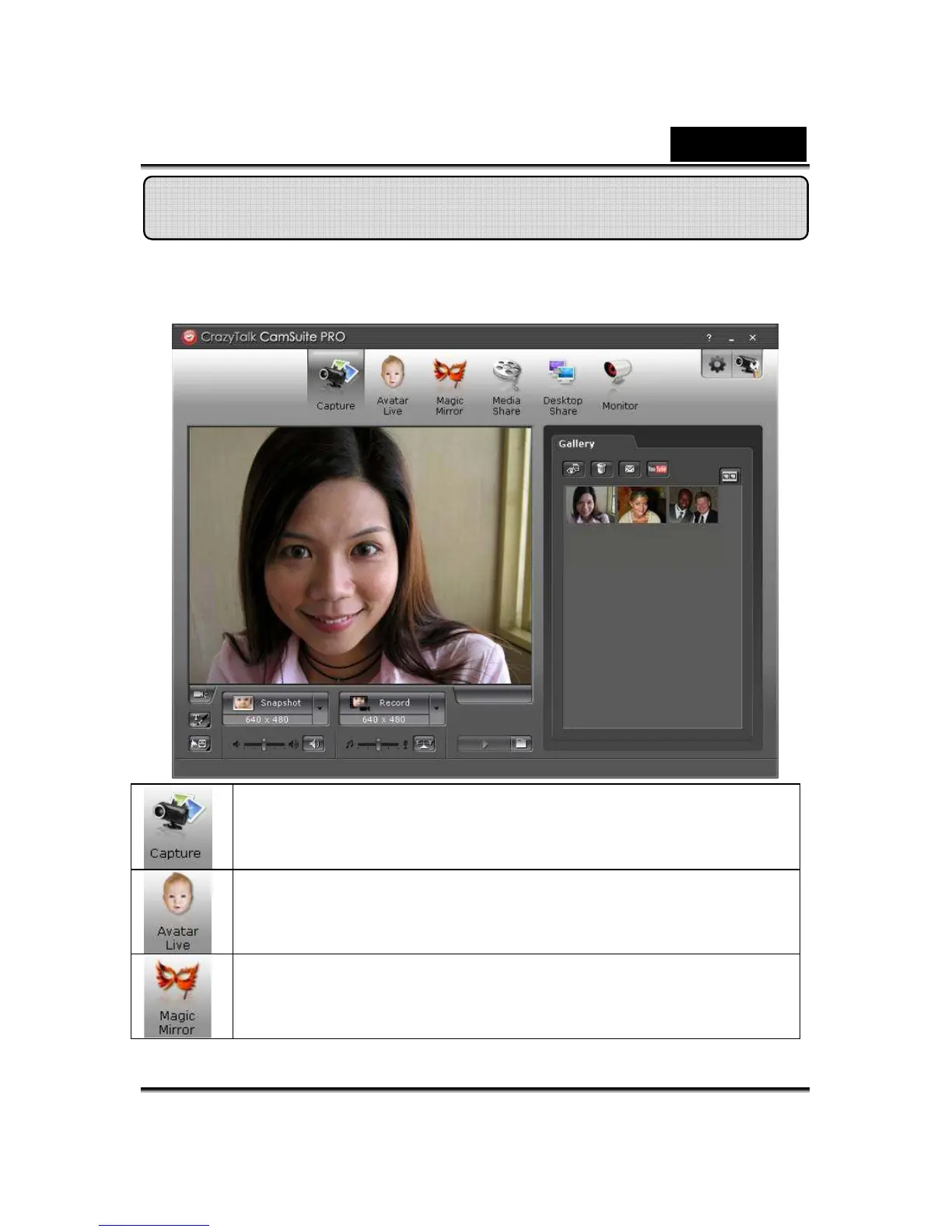 Genius FaceCam 1020 - CrazyTalk Cam Suite PRO Features; Capture Functionality; Avatar Live Mode; Magic Mirror Effects