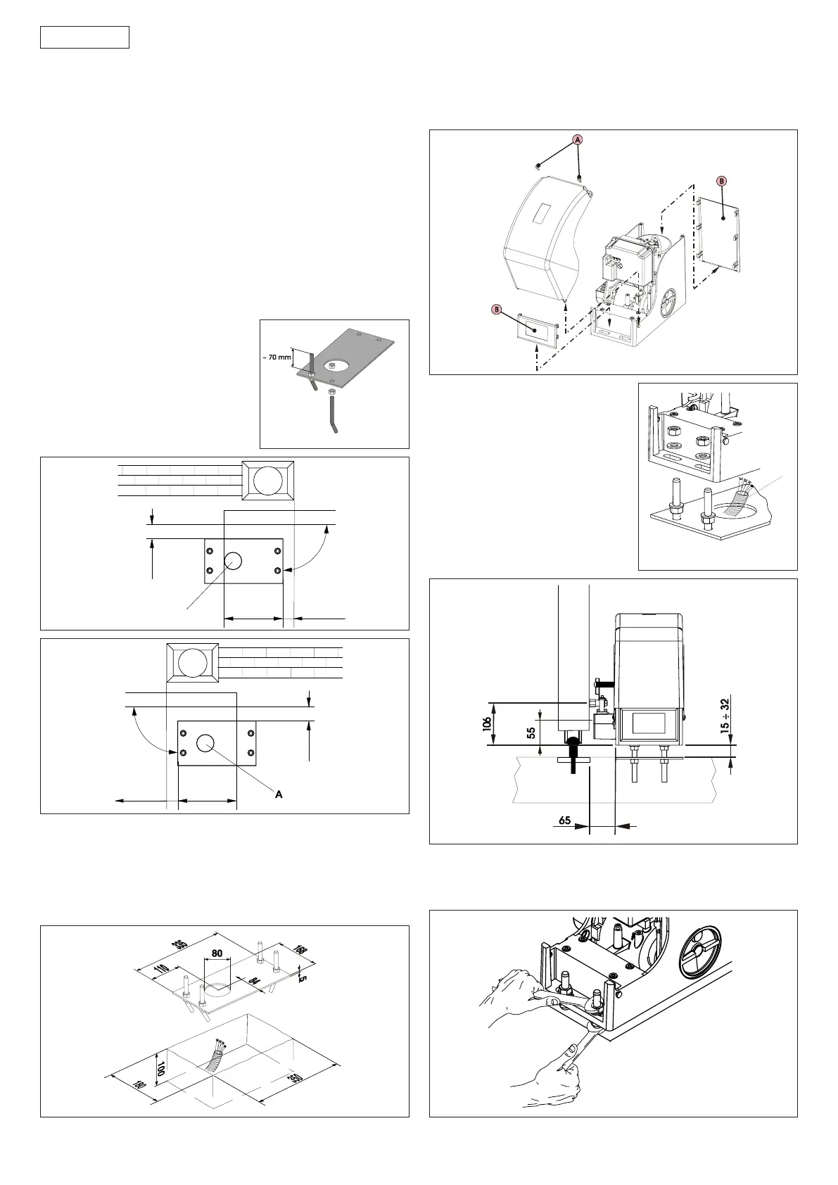 4) Fixer le motoréducteur sur la plaque de fondation en serrant les écrous