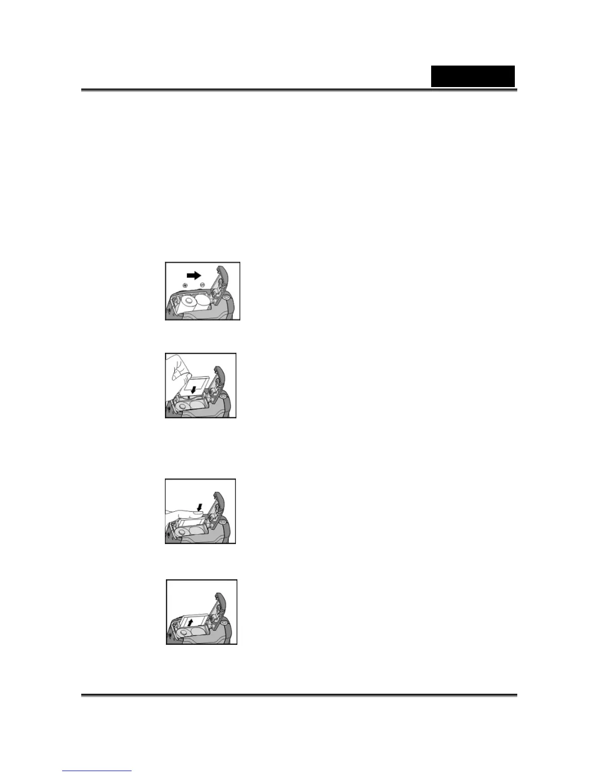 ● Slide the switch on the battery cover in the direction indicated by the arrow.