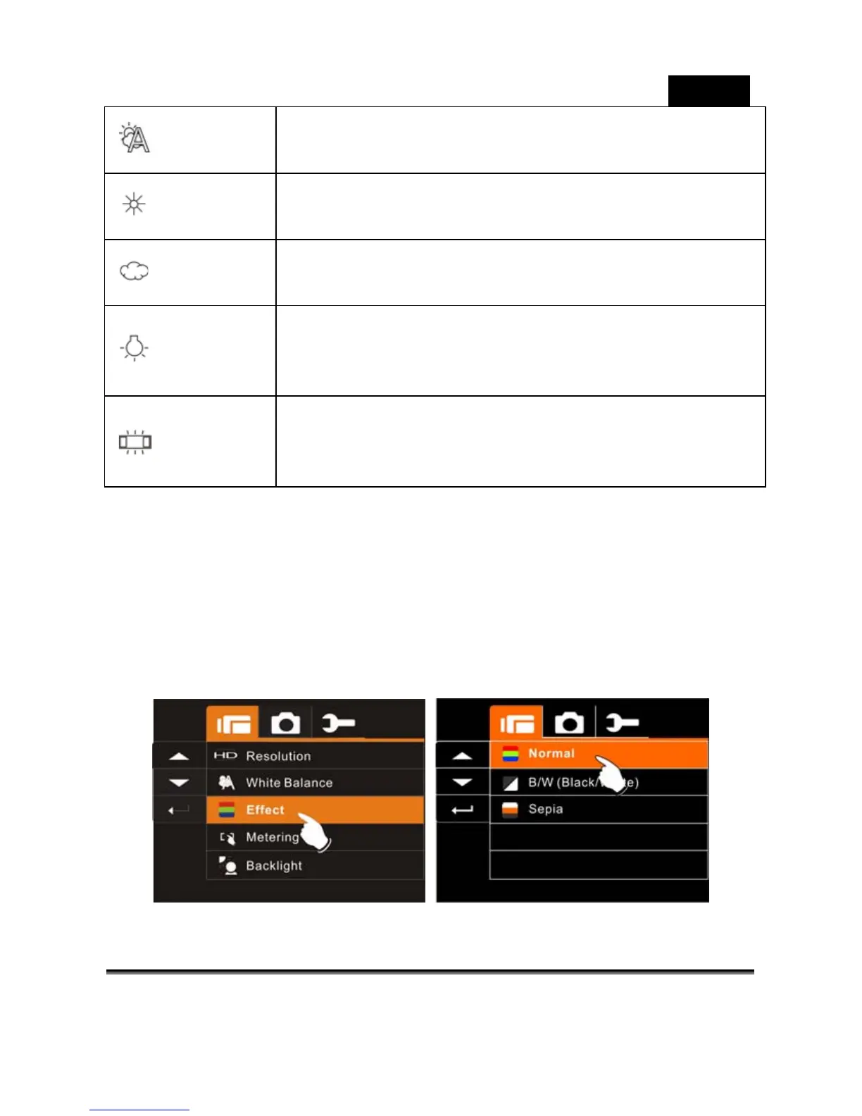 2. Press 4-Way Direction Button to select Normal, B/W or Sepia.