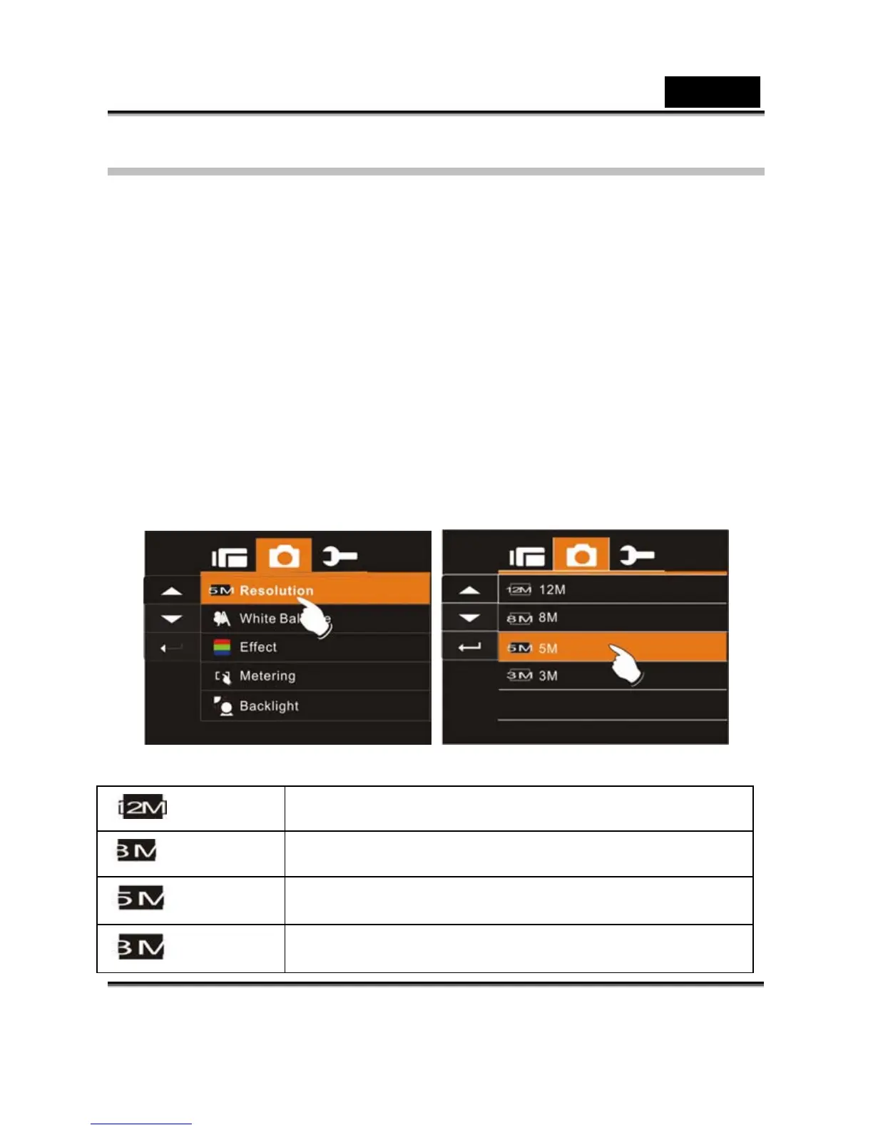 3. Press 4-Way Direction Button to select 12M,8M, 5M or 3M.