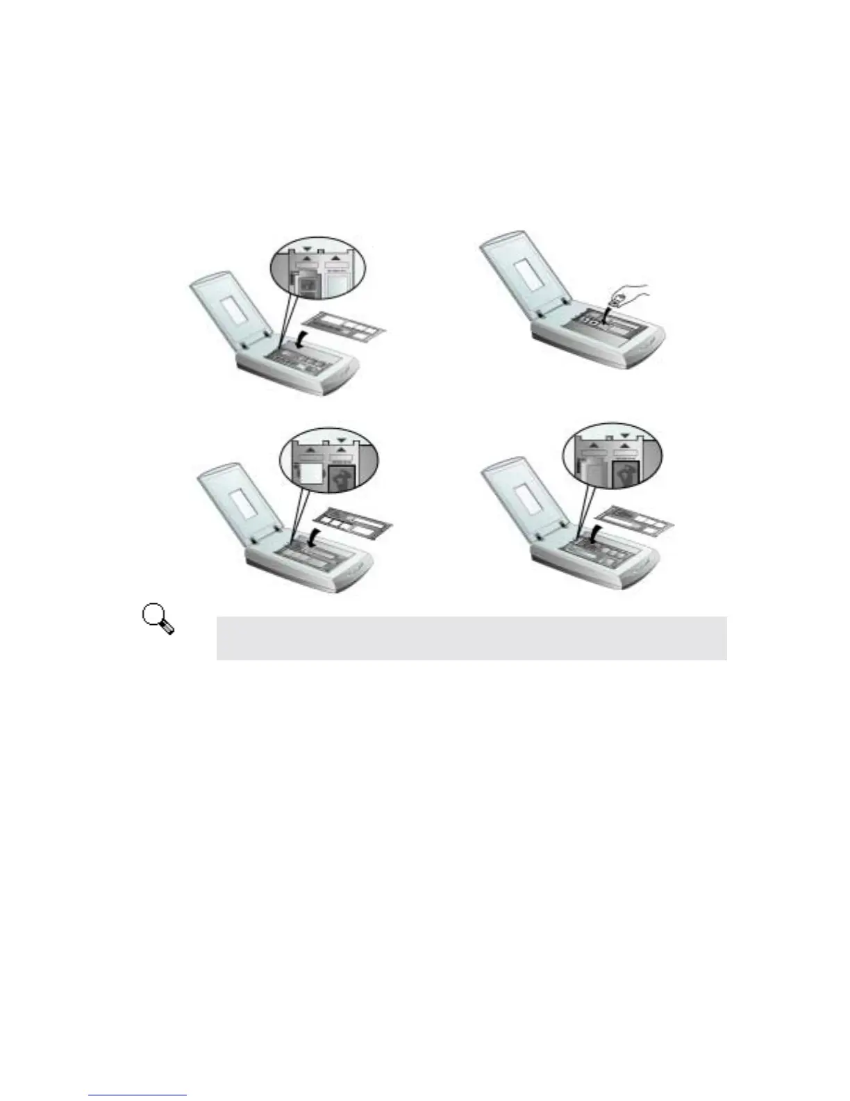 the scanner glass, and the arrow sign of the particular film compartment must be in alignment