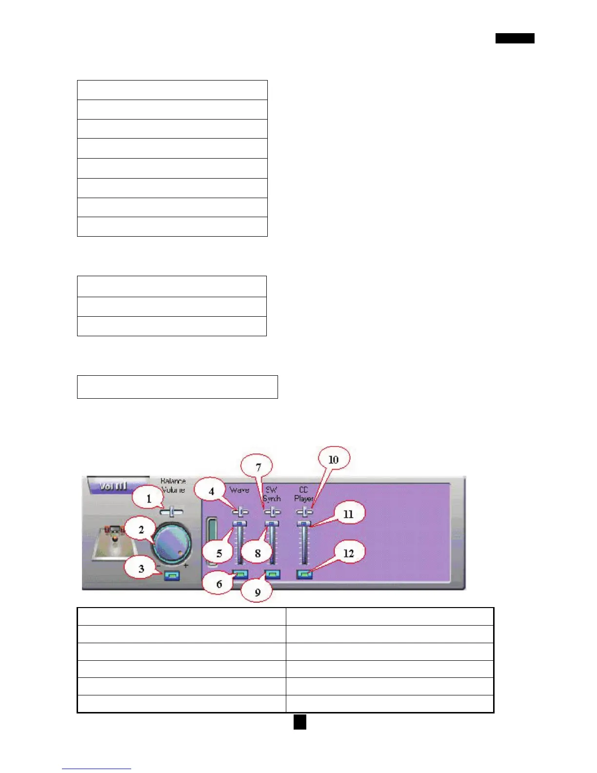 3.Master Volume On/Off 9. SW Synth Volume On/Off