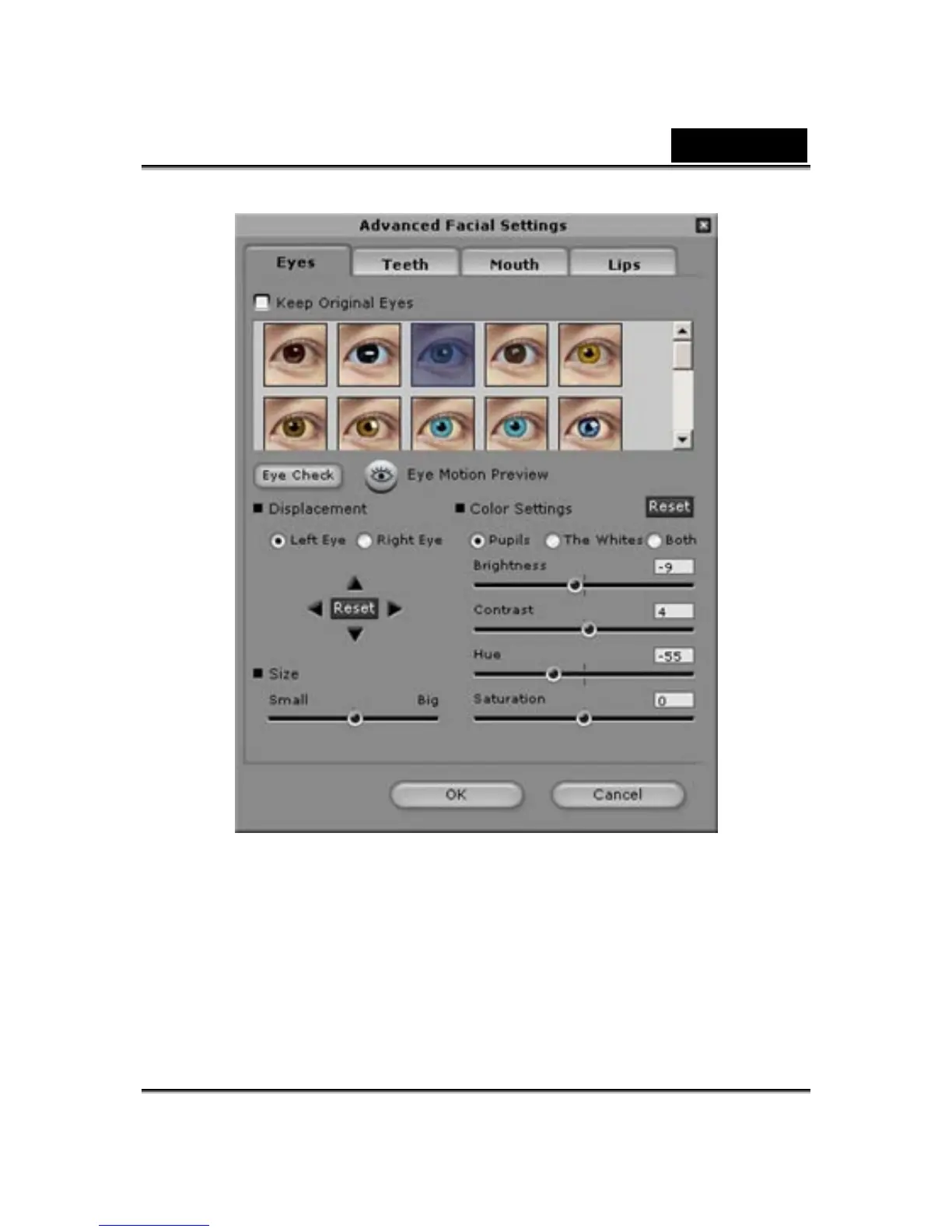 Eyes: Add virtual eyes and adjust the color of each part of the eyes.