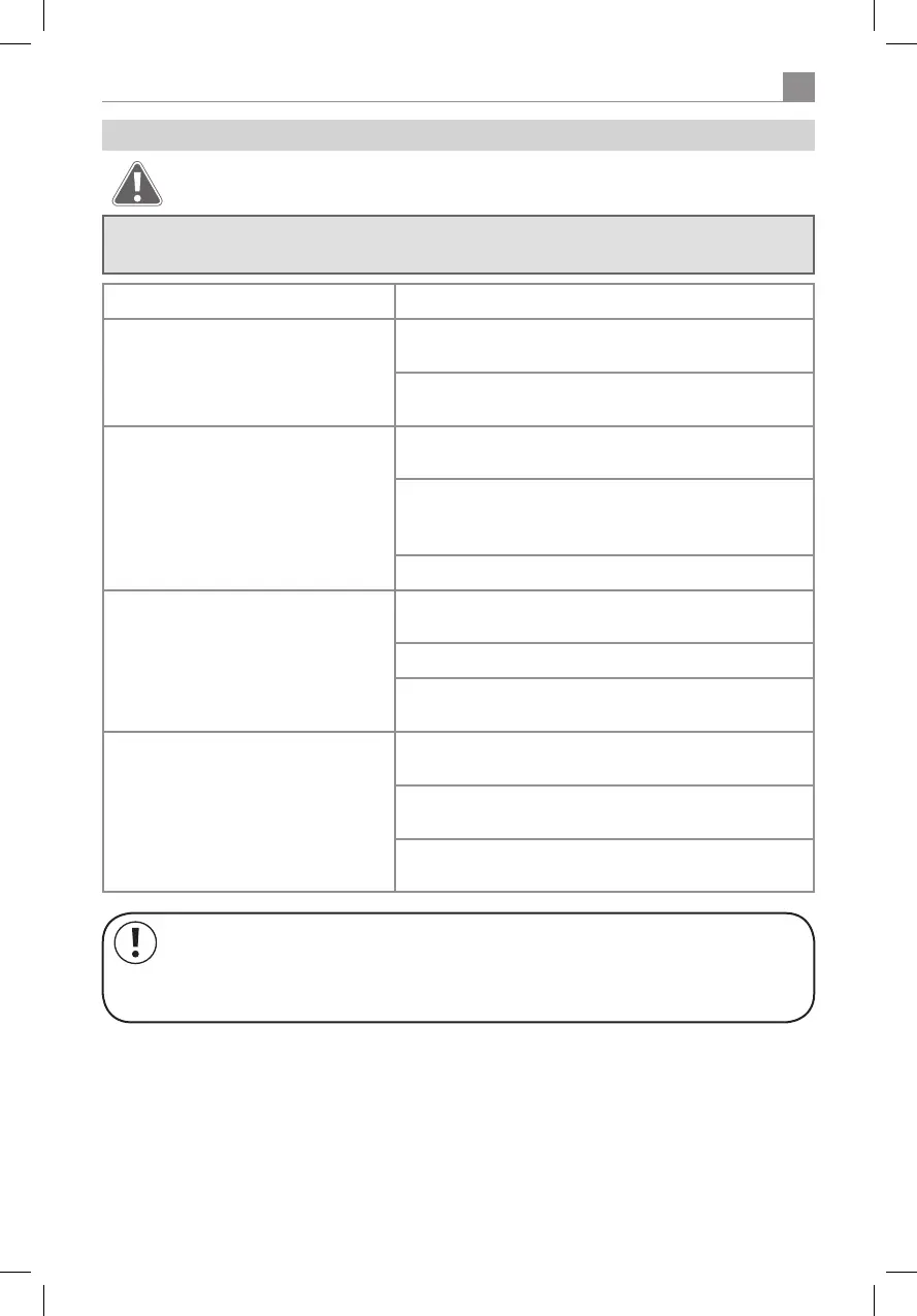Vor Behebung einer Störung das Gerät ausschalten und den Netzstecker ziehen! Sonst kann es zu