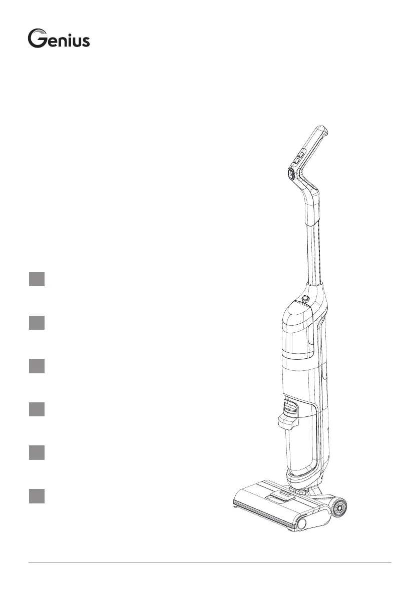 Your Genius Vacuum Cleaner might not be working due to several reasons: * The battery is empty: Charge the battery. * The brush roller is blocked: Clean the brush roller and remove any debris like hair and fibers. * The waste water tank is full: Empty the waste water tank. * The suction opening is blocked: Clean the suction opening. * Water tanks, brush roll, or brush roll cover are not correctly inserted: Check the correct fit of all parts and remove blockages or dirt if necessary. * The appliance is in the upright position: Hold the floor brush with your foot and move the appliance by the handle to a diagonal position, then press the On/Off switch again.