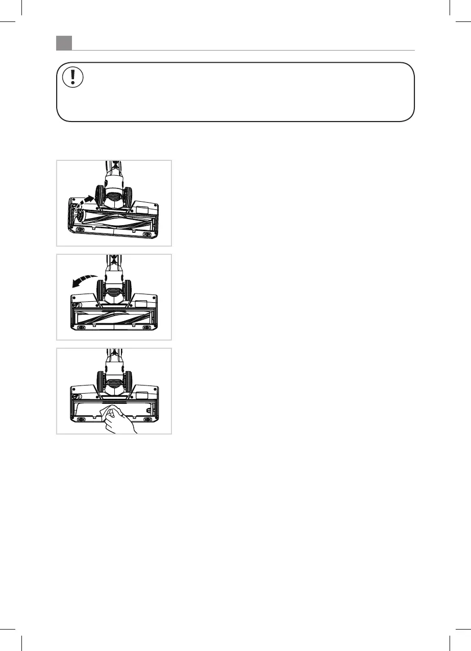 Haal de borstelrol er in pijlrichting uit en verwijder het vuil. Indien