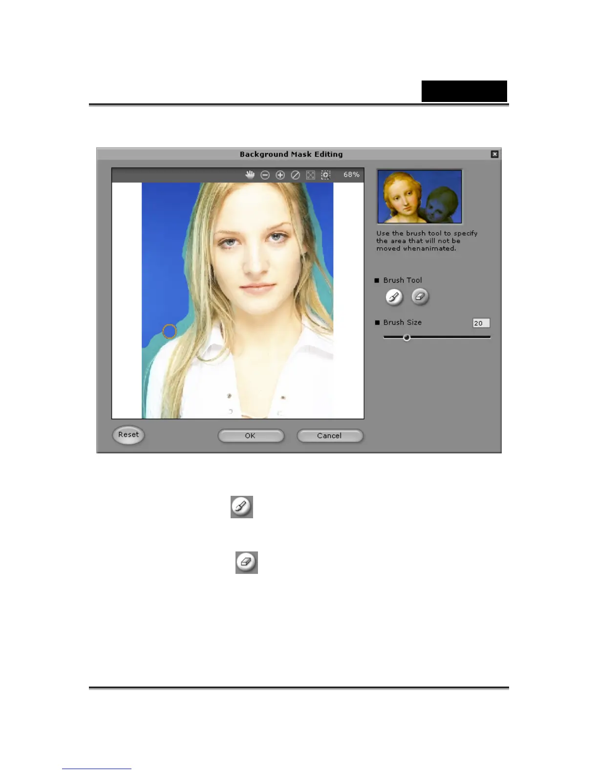 o Brush Size: Move the slider to adjust the size of the brush tool.