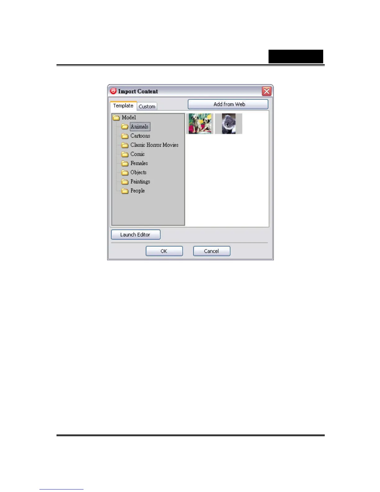 CrazyTalk Cam Suite default template images. Alternatively, click