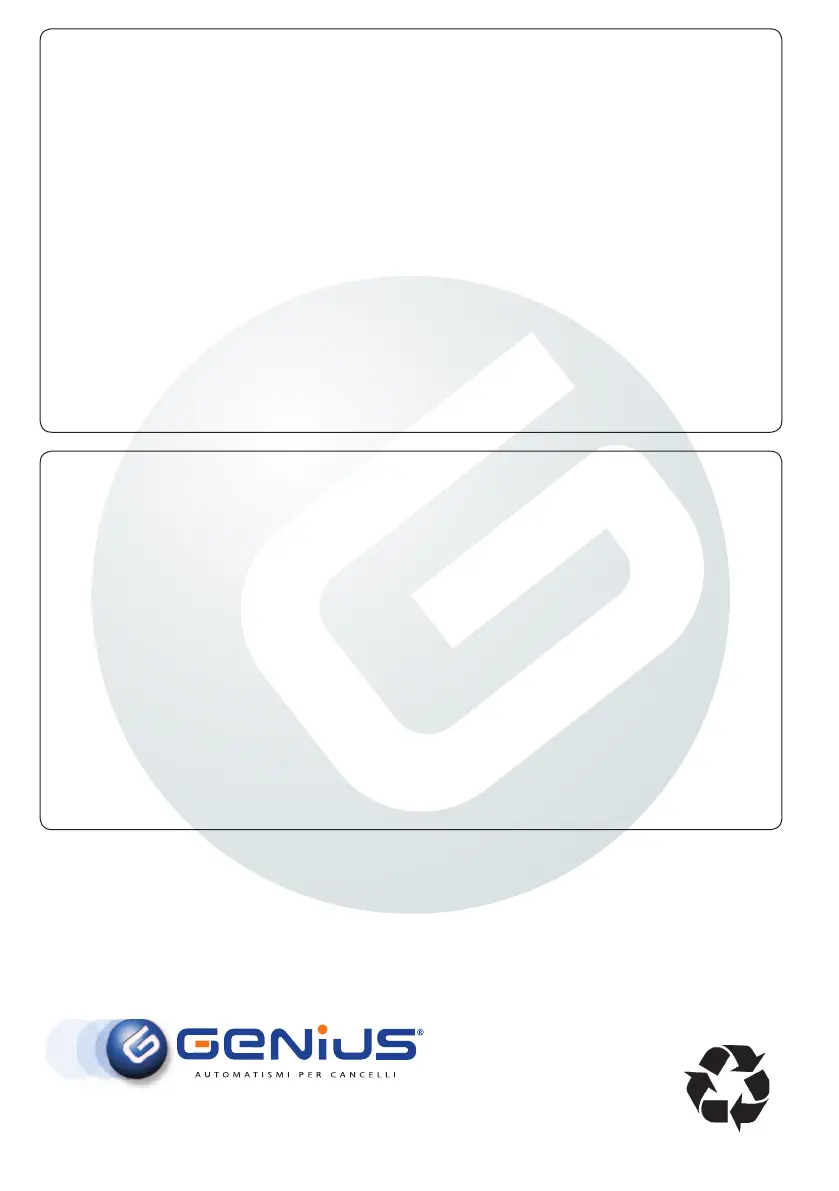 Le descrizioni e le illustrazioni del presente manuale non sono impegnative. GENIUS si riserva il diritto, lasciando inalterate