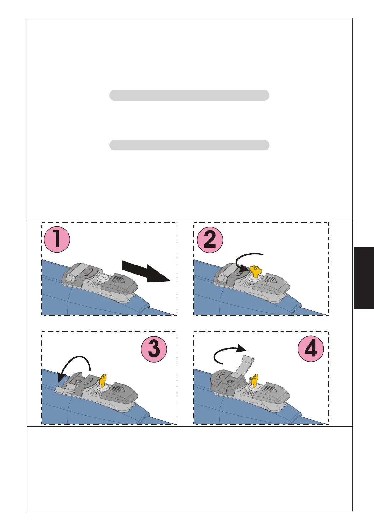 1) Gire el sistema de desbloqueo 180° en la dirección opuesta a la indicada por la flecha.