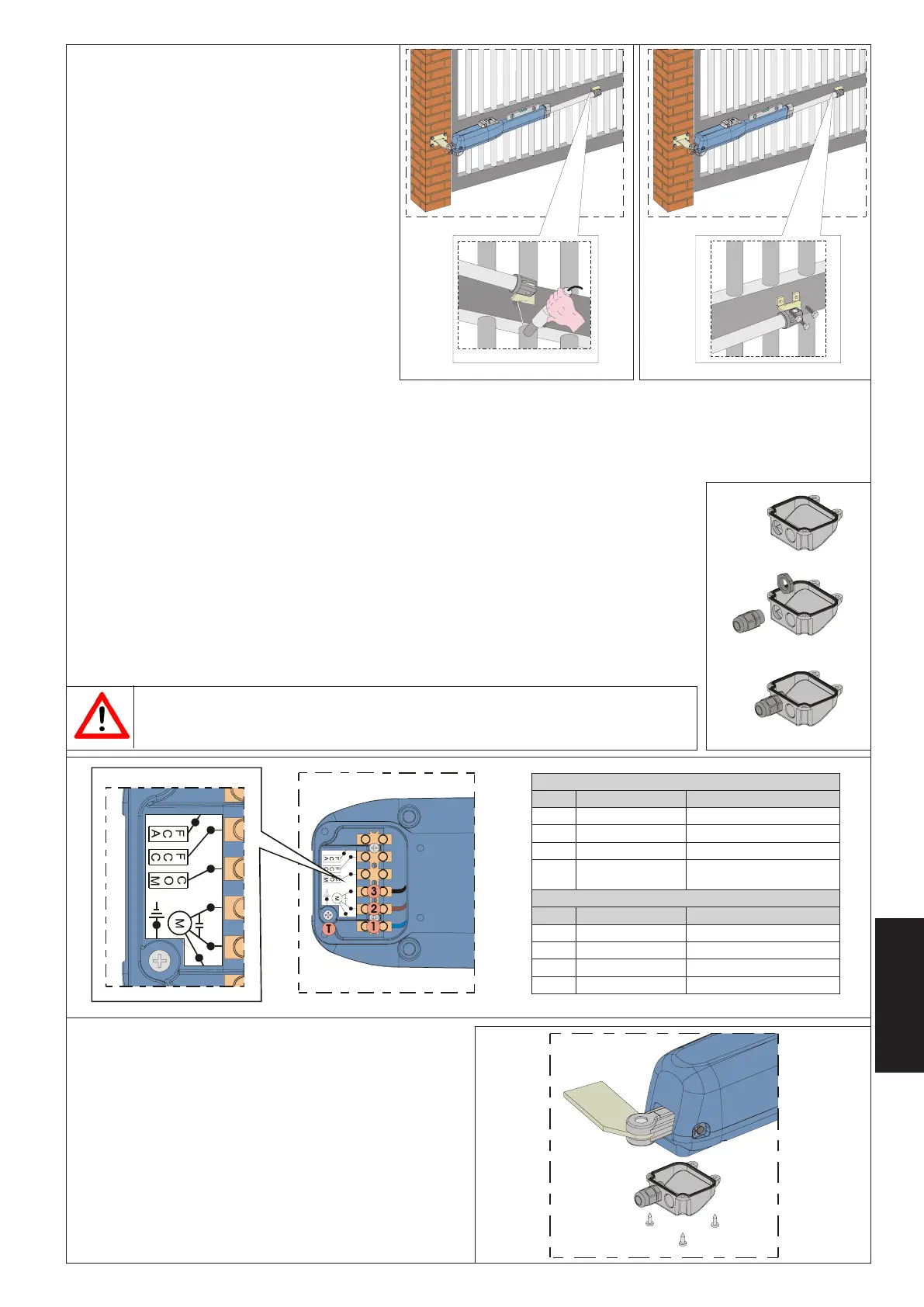 Aan de onderkant van de aandrijving zit een klemmenbord voor aansluiting van de motor, de eventuele