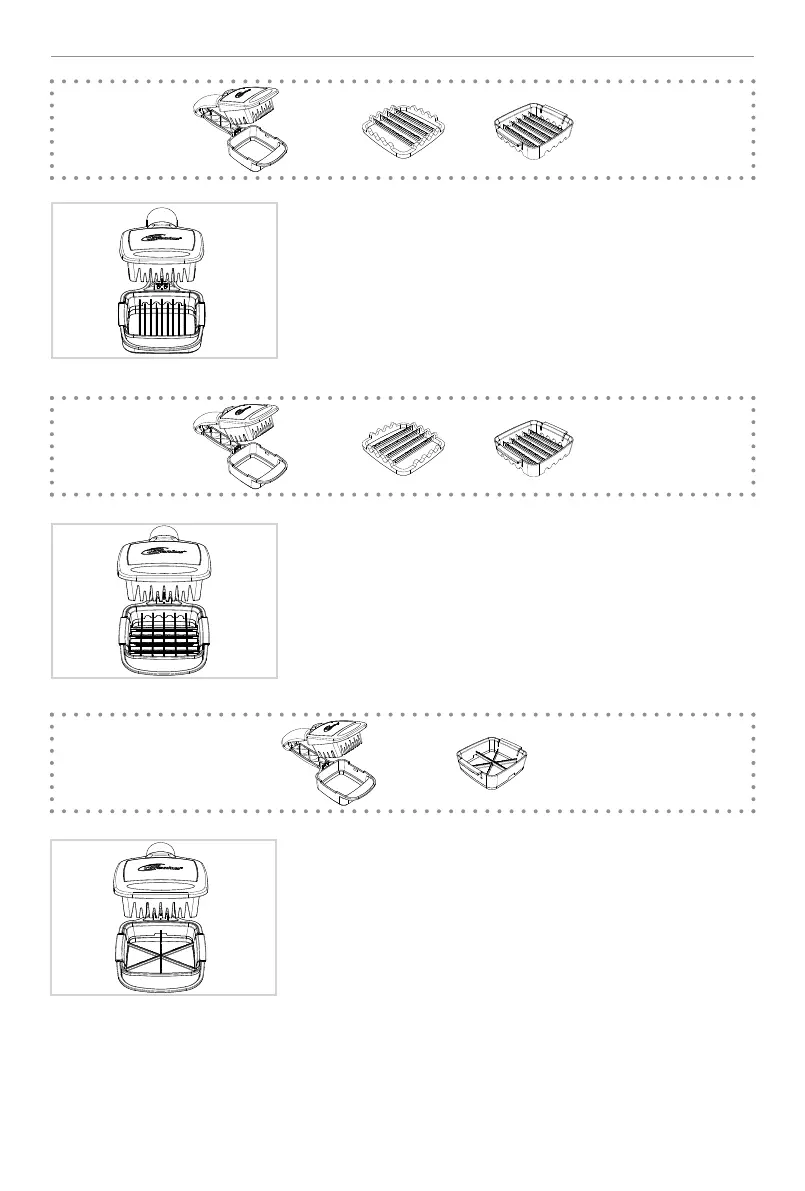 Para cortar en dados o tiras, coloque el módulo de corte inferior en