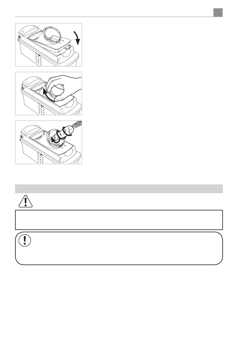 Klinge nach dem Einsetzen nach unten Richtung Auffangbehälter