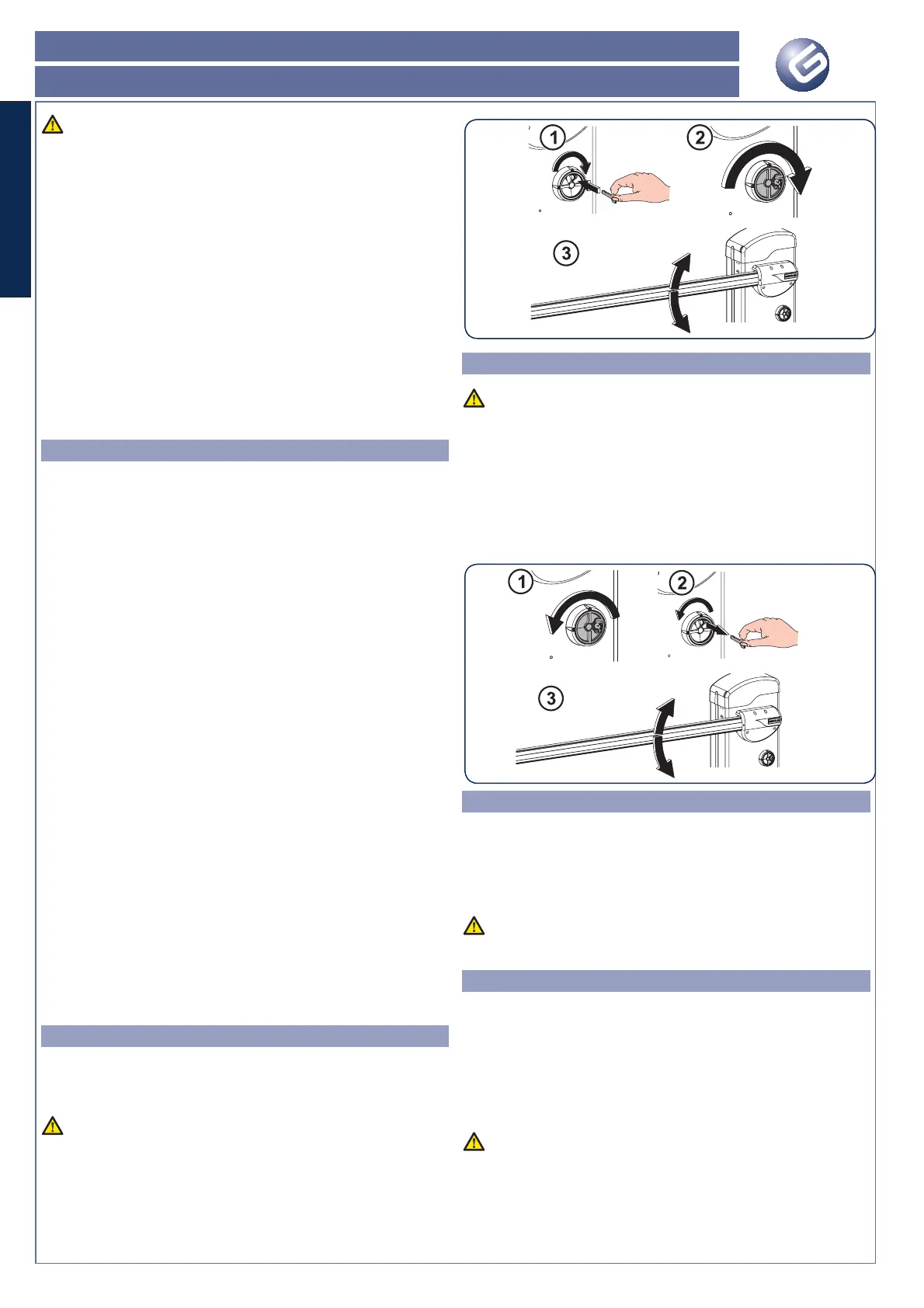 Nel caso si renda necessario movimentare manualmente l’asta