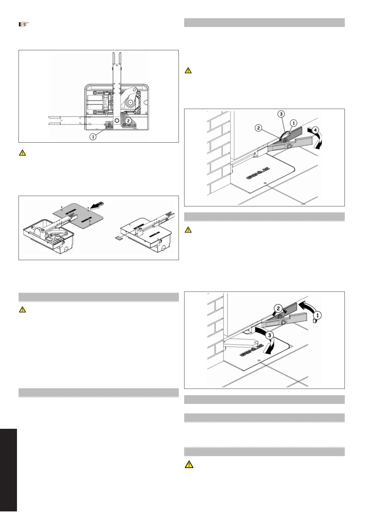 Het mechanisme zit op de draagbeugel van de poort (Fig. 1 ref. 햲) en