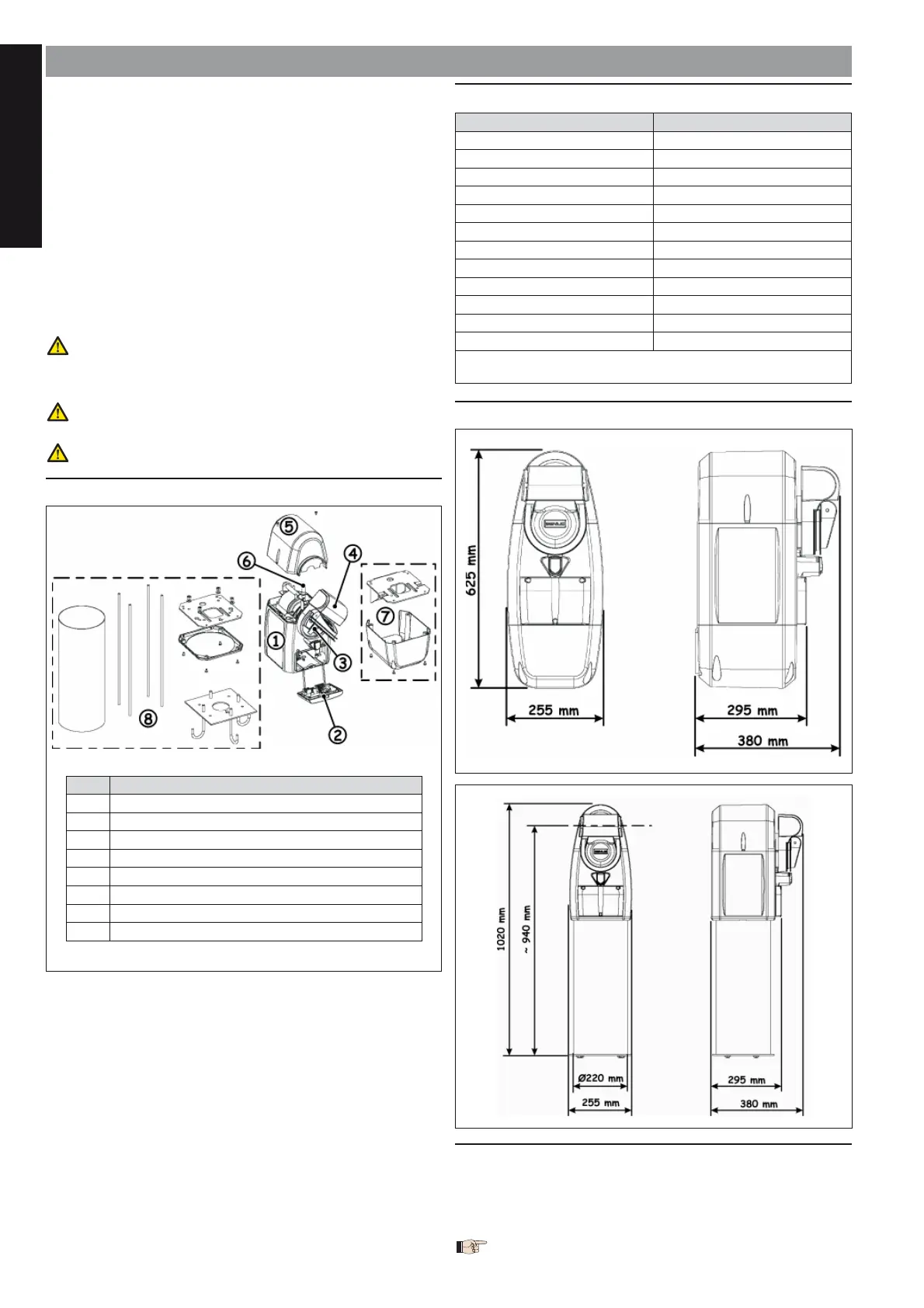 Dimensioni Vedi fig. 2