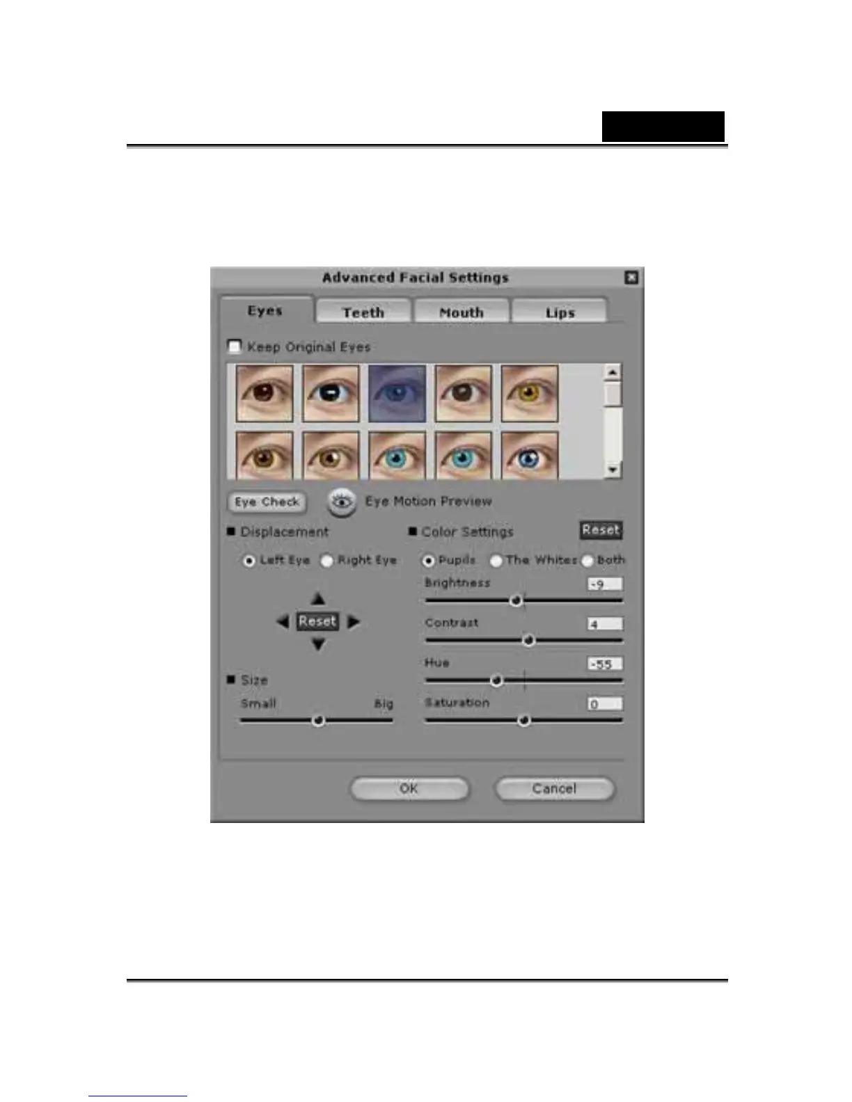Advanced Facial Settings: Click to open a dialog box with four tabs.