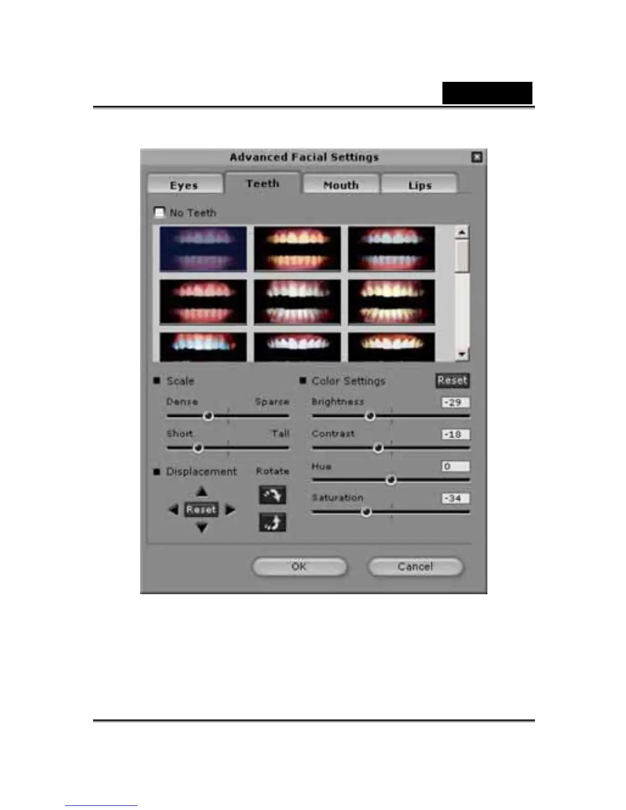Teeth: Add virtual teeth and adjust the teeth.