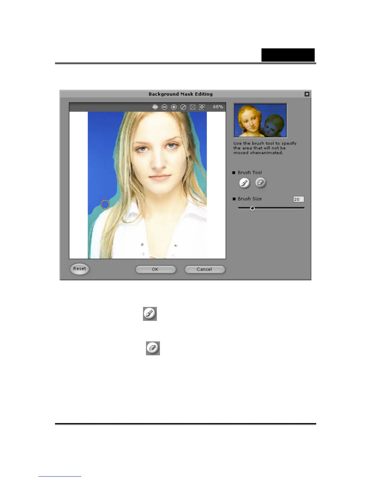 o Brush Size: Move the slider to adjust the size of the brush tool.