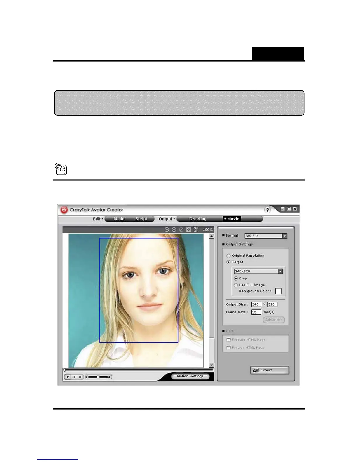 Movie files supported by CrazyTalk Avatar Creator: AVI, Real Media (RM),