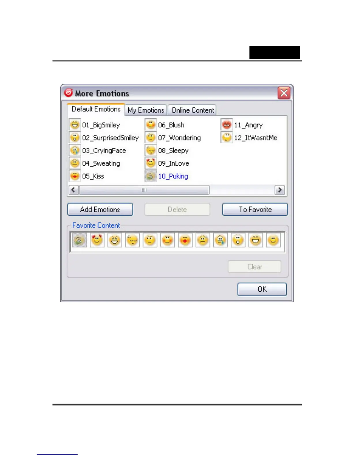 In the dialog, you can see Default Emotions, My Emotions and