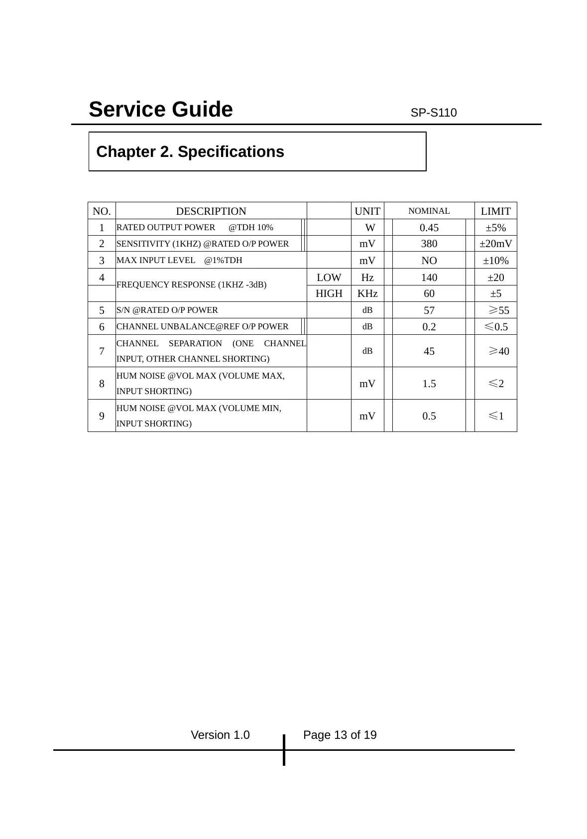 Version 1.0 Page 13 of 19