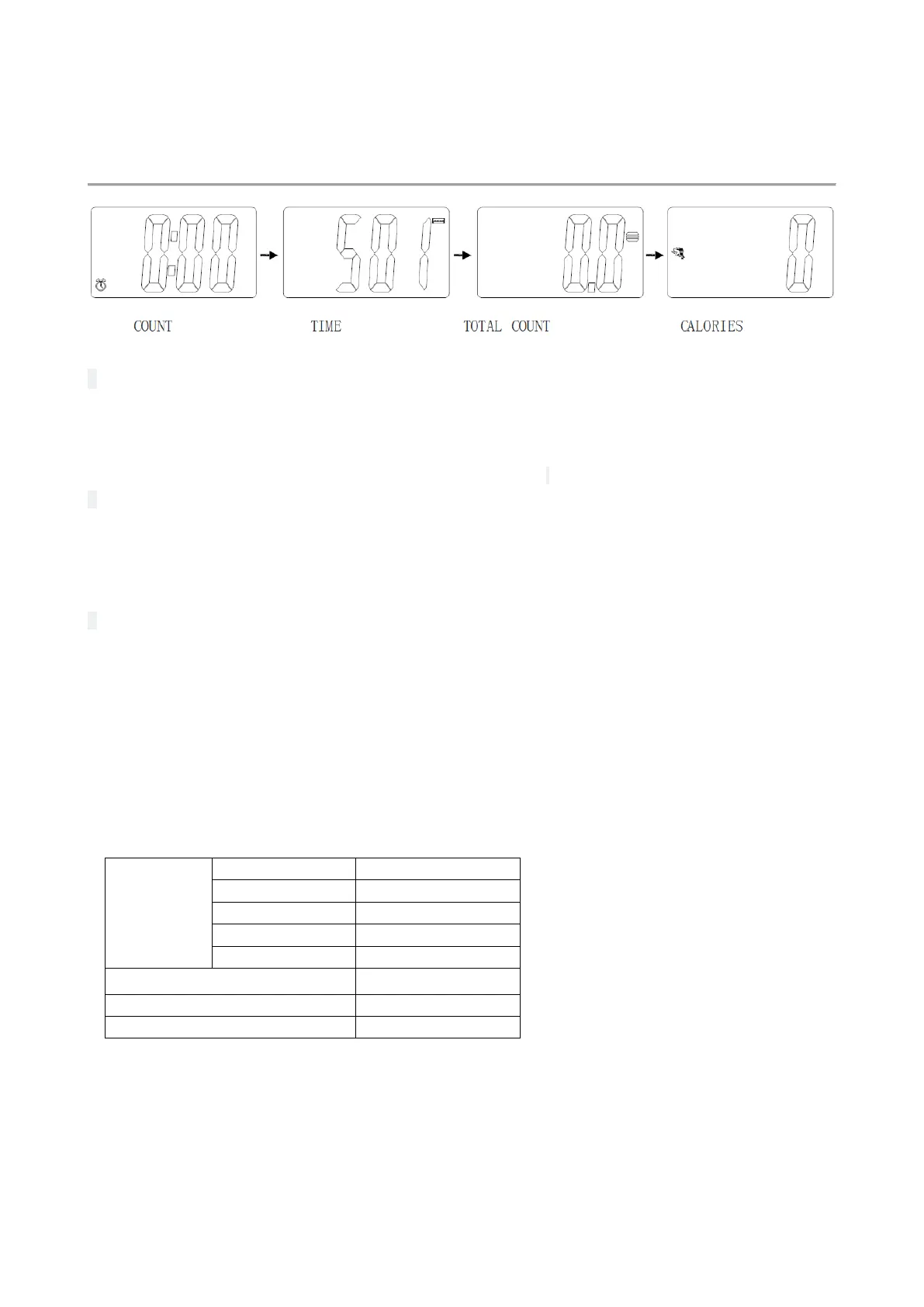 SCAN→ COUNT→ TIME→ TOTAL COUNT→ CALORIES