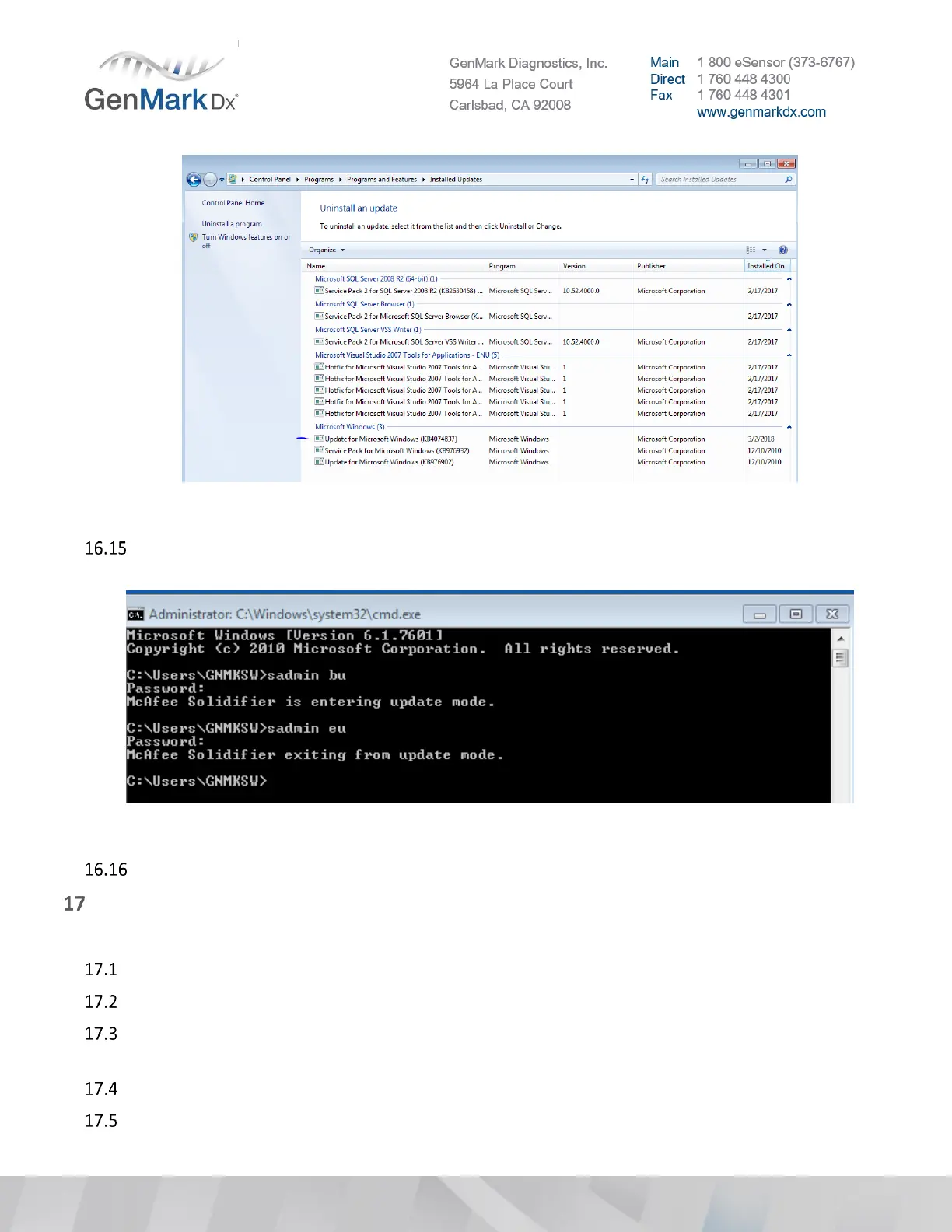 mode. Password is Genmark5964. Verify that McAfee Solidifier is exiting from update mode