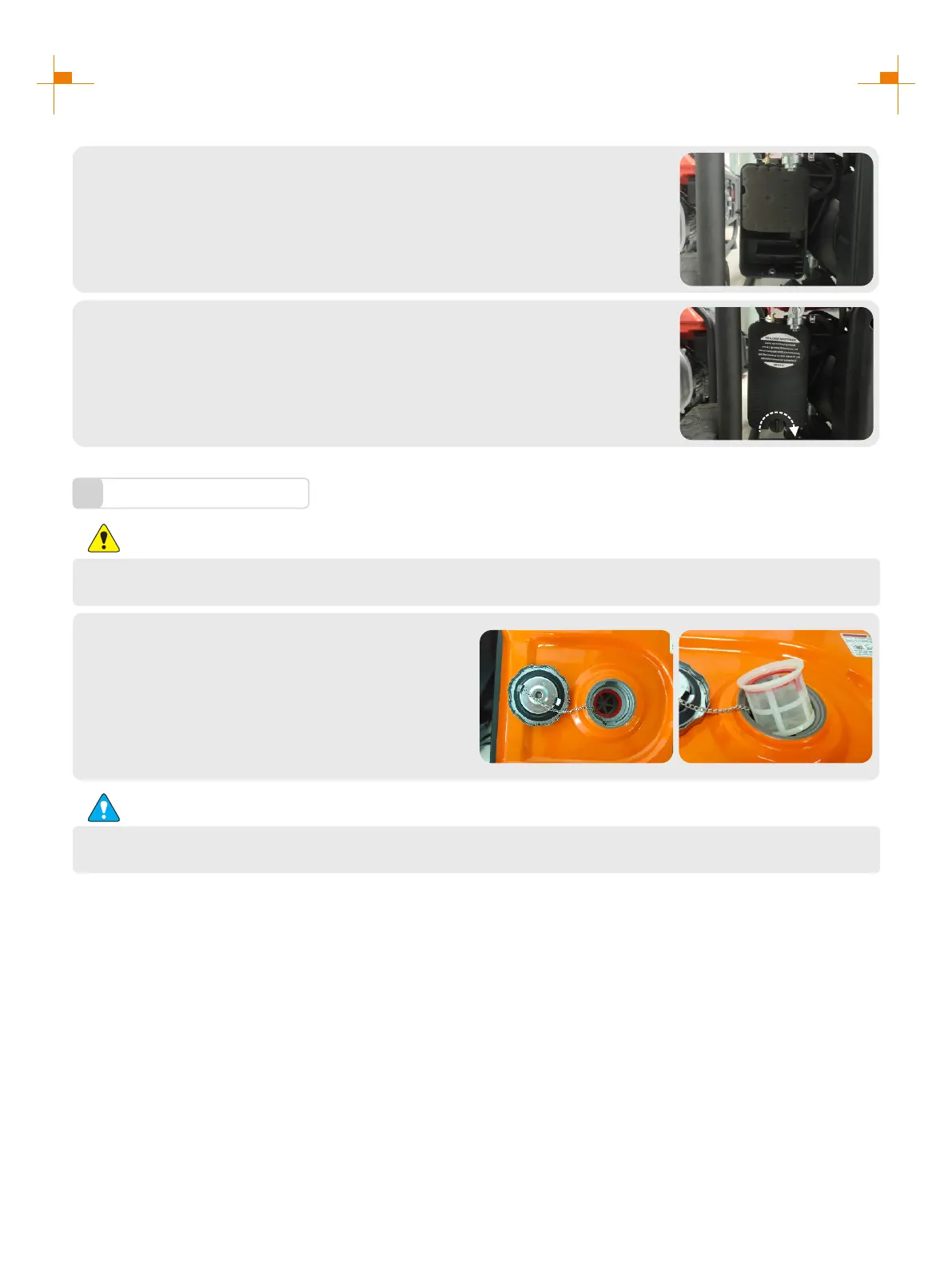 Be sure to screw fuel tank cap tight.