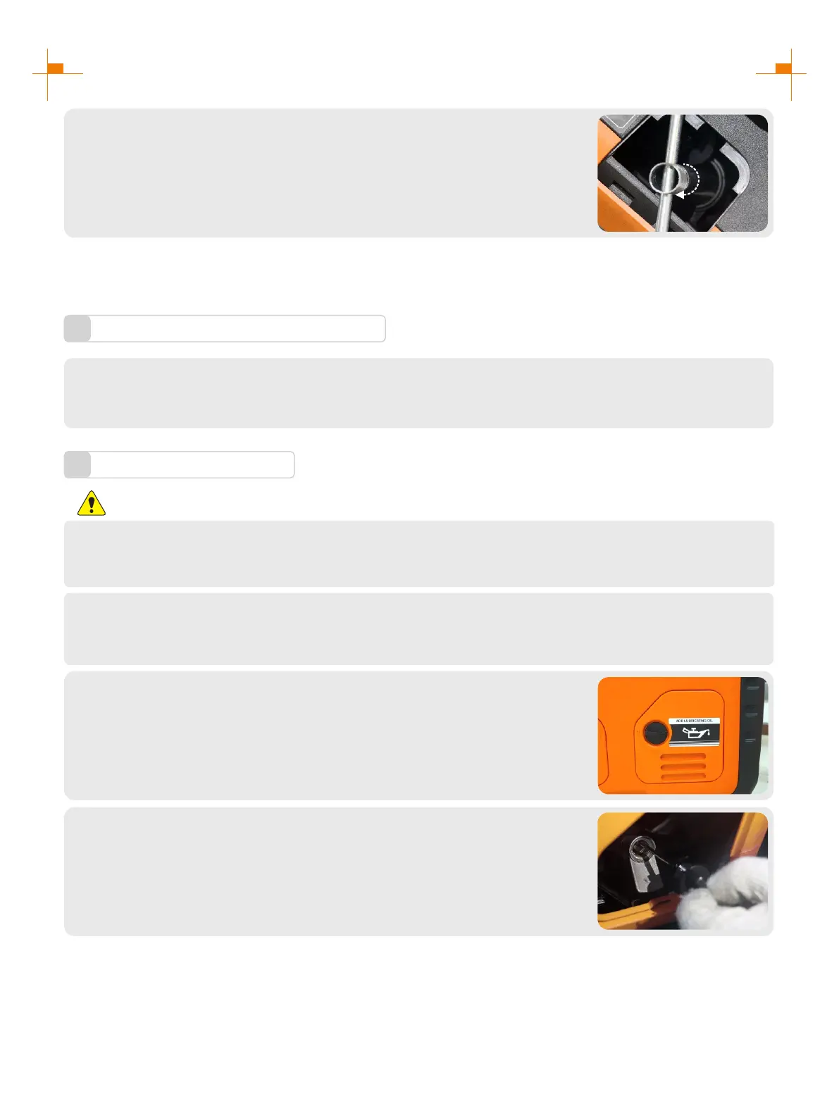 Put the generator on a horizontal plane, start the generator, run it for a few minutes to make it warm, then