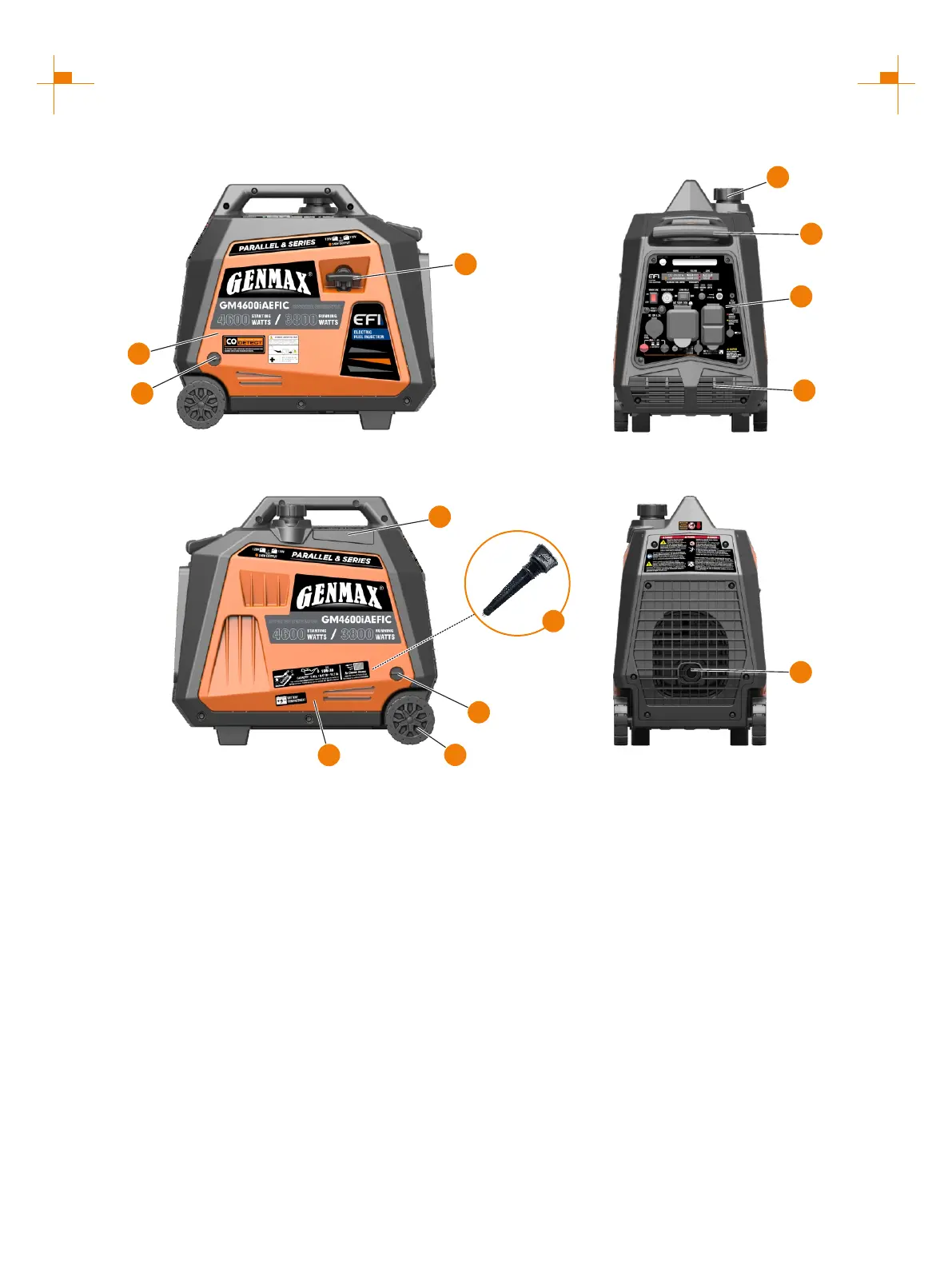 ⑥ Engine Cooling Vents: Helps move airflow in unit