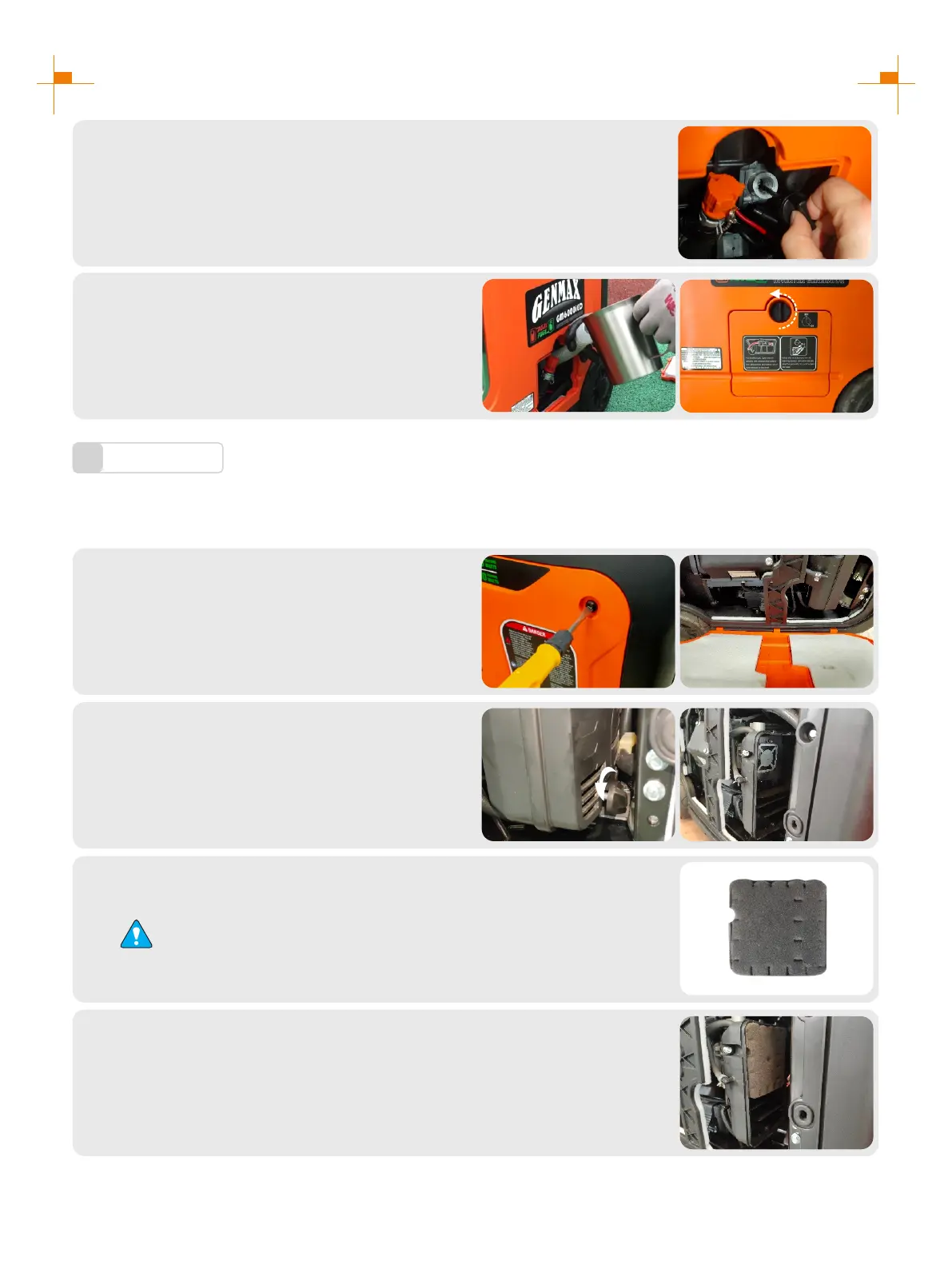 with air cleaner, and there shall be no gap leaking air. Be sure not to start the