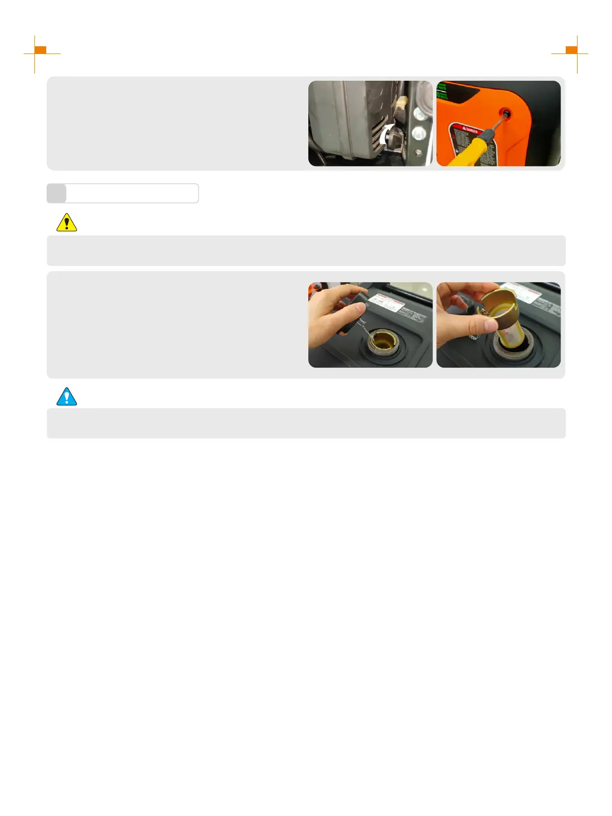 Be sure not to open fuel tank of the generator in a place where smoking or with flame.
