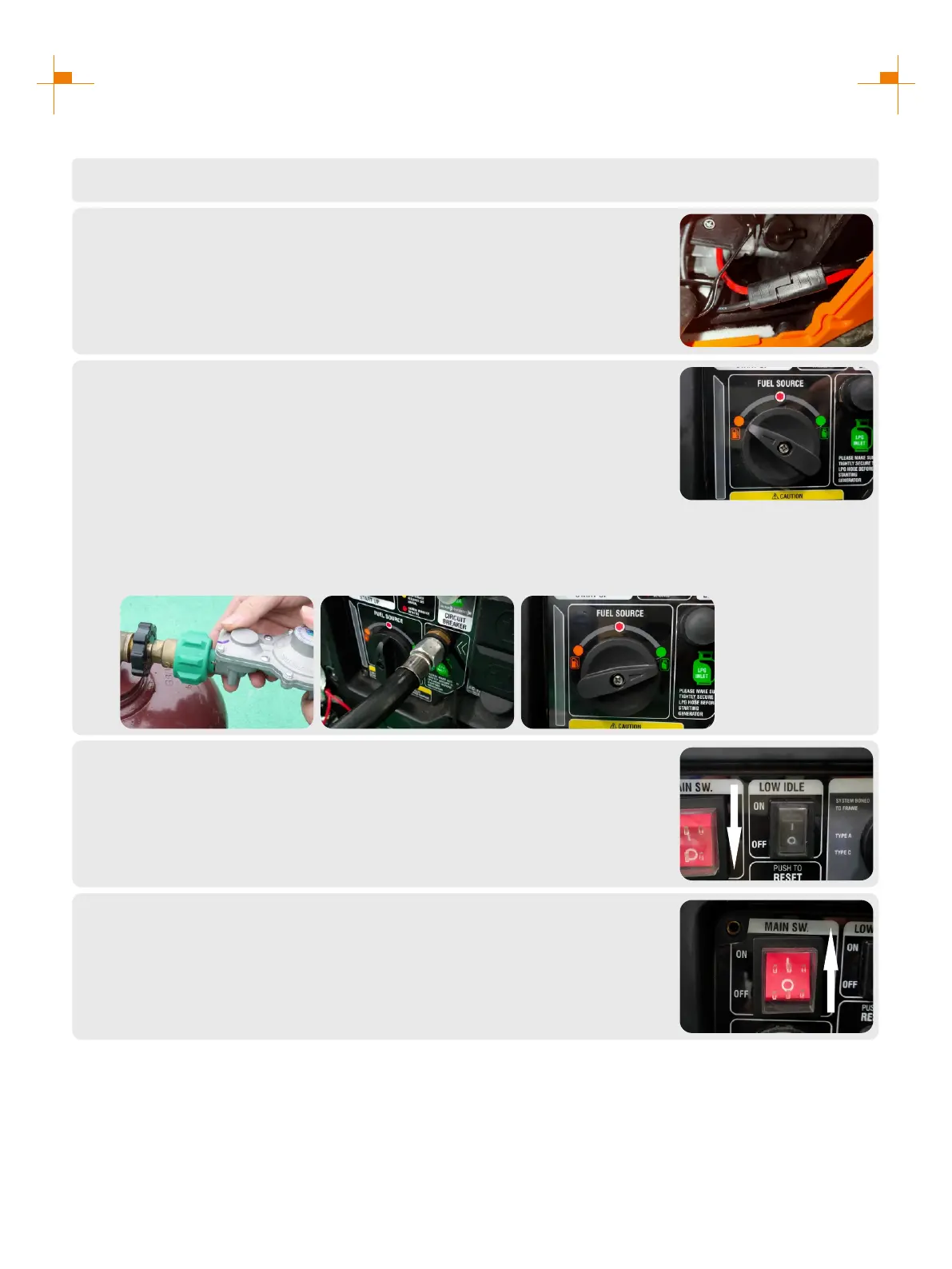 a. Gasoline: Turn the fuel source switch to gasoline;
