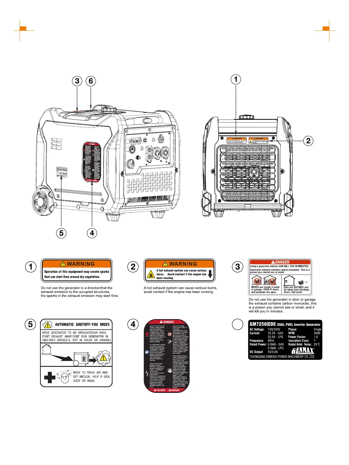 GENMAX GM7250iEDC - Safety Labels and Decals