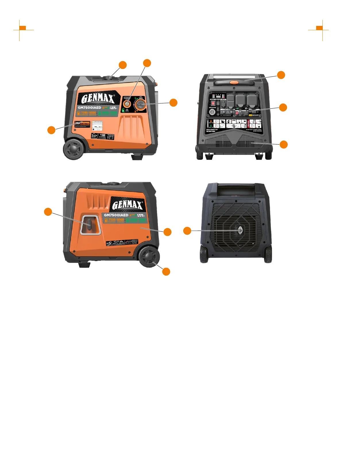 ⑥ Engine Cooling Vents: Helps move airflow in unit