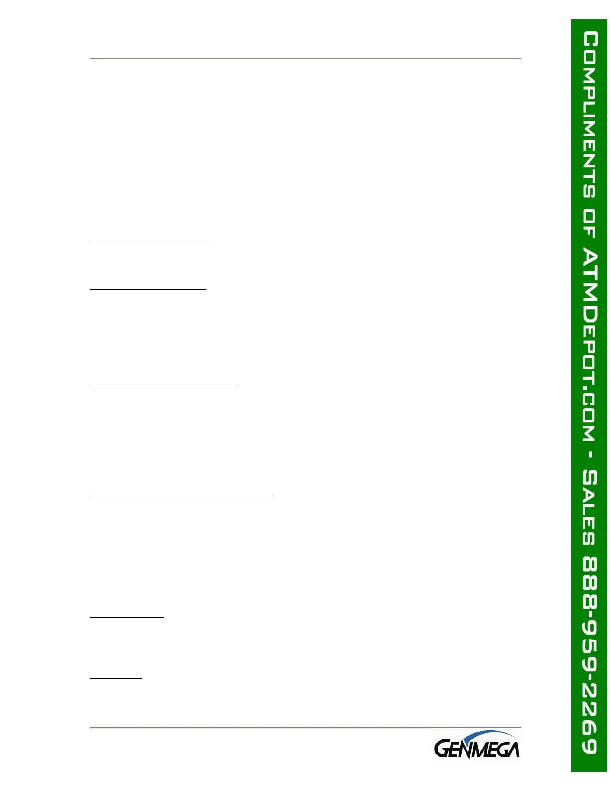 For warranty purposes, Genmega requires the 1900™ series ATM be connected to a