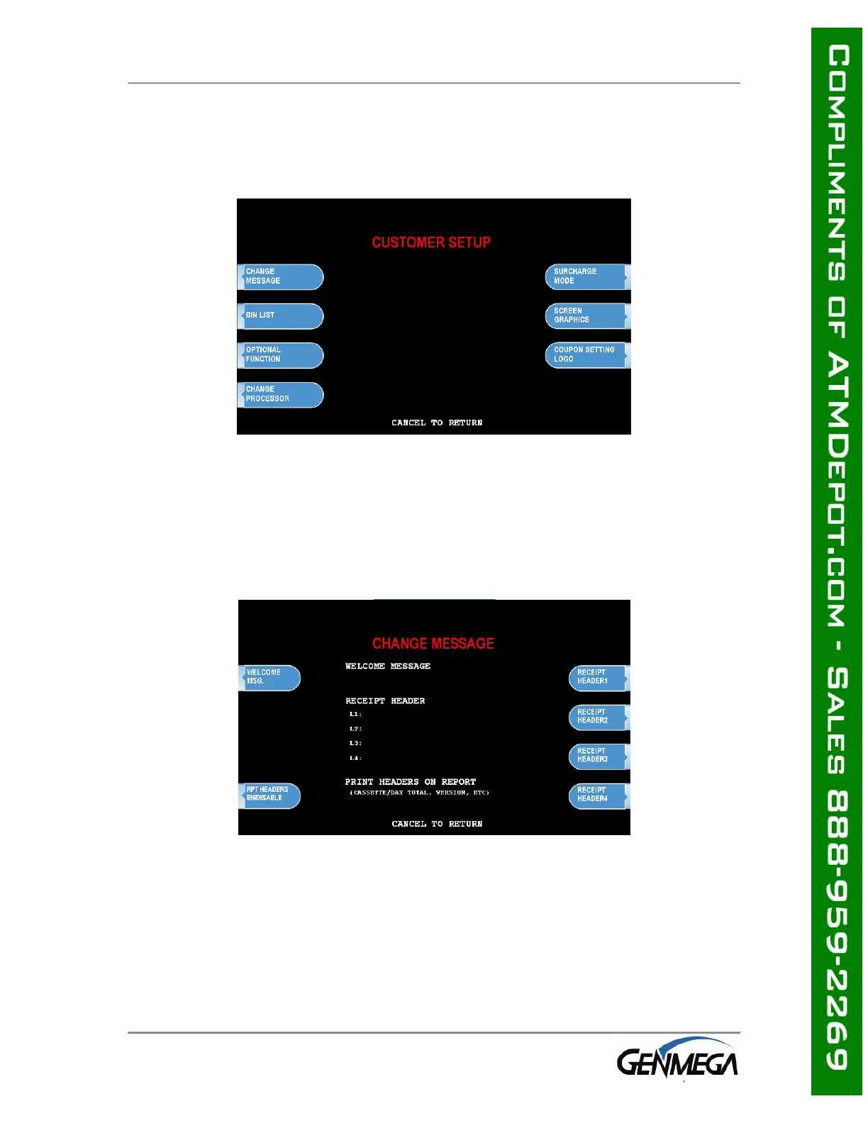 The Customer Setup menu controls surcharge information, BIN lists, receipt options,