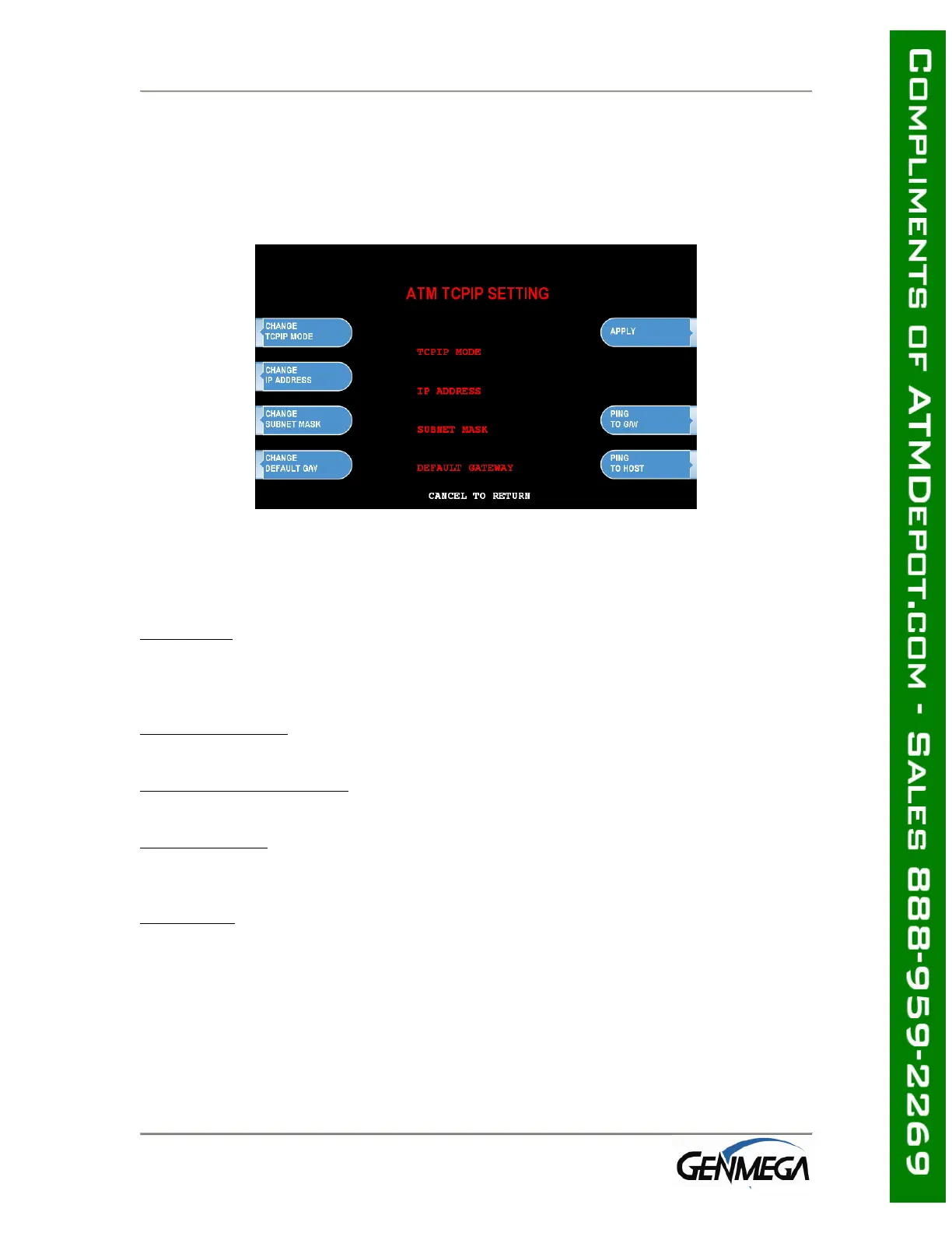 : Enter the ATM IP address here (for static IP) or this field will