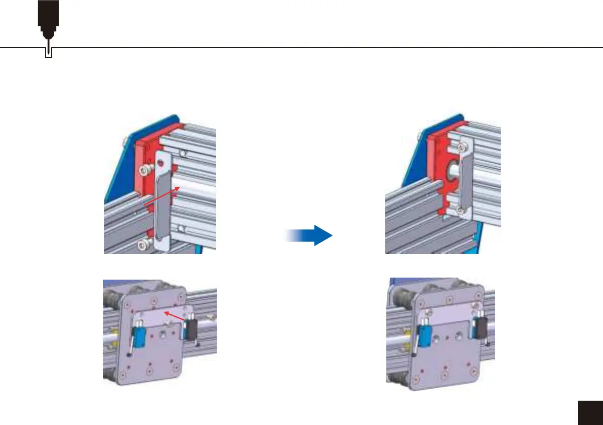 Step 3: Use the removed screws to install the Y-Axis limit blocks and limit switches, then adjust the limit switches