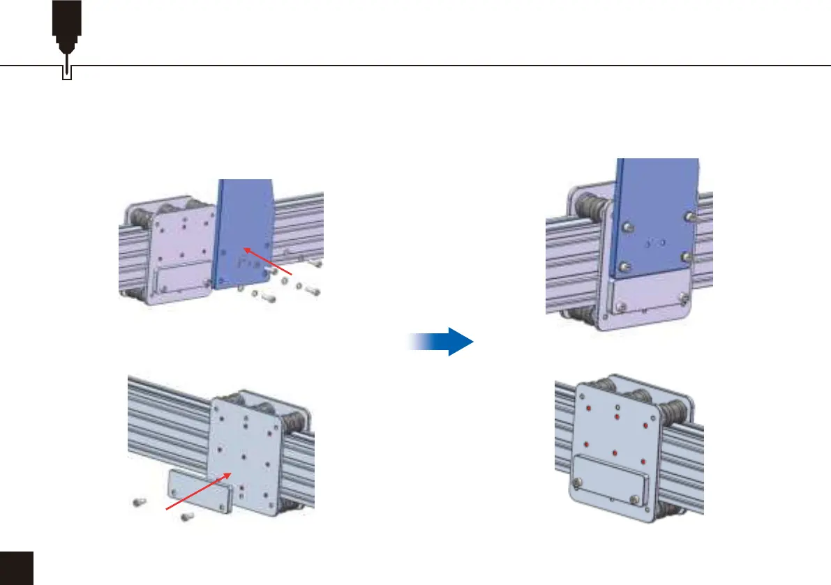 Step 4: Install the mounting block and gantry assembly using the removed screws. The left and right sides are installed