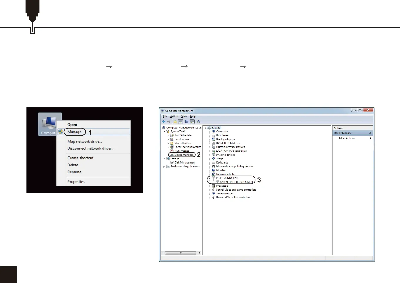 · Your machine will be the USB Serial Port(COMX), where the “X" represents the COM number, for example COM12.