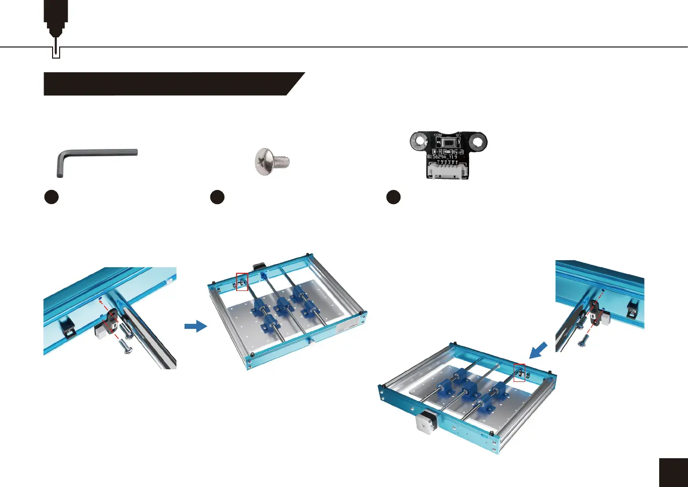 フロントモジュールとリアモジュールの両方に、(4)本のネジでリミットスイッチを取り付けます。